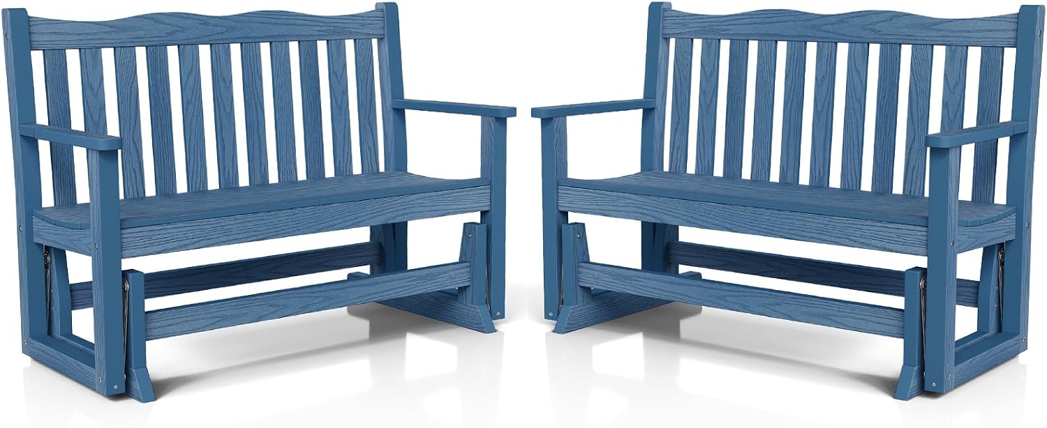 Stoog Outdoor Glider Benches Set of 2, Weatherproof Glider for Porch, Never Fade or Rot, Blue