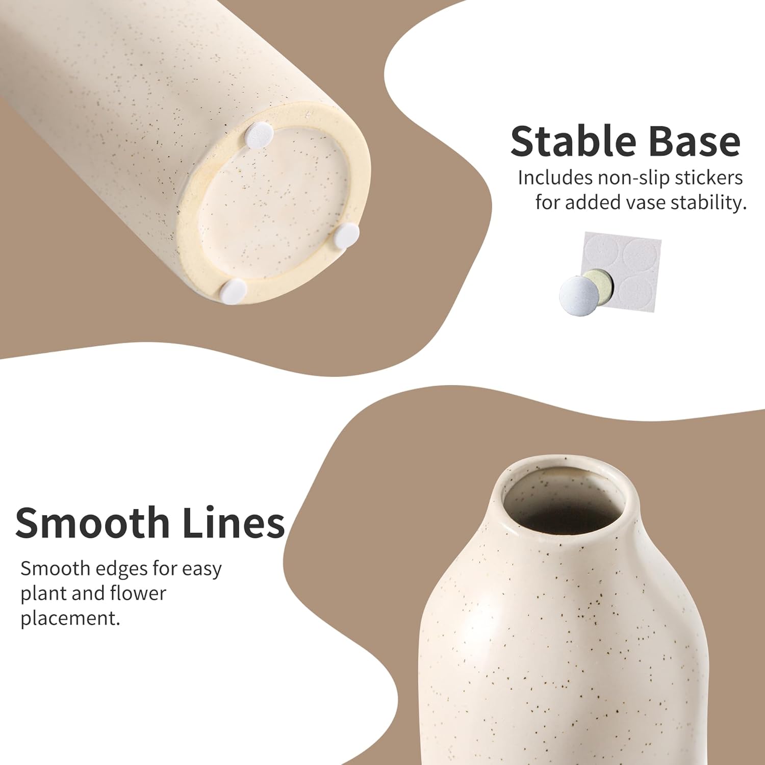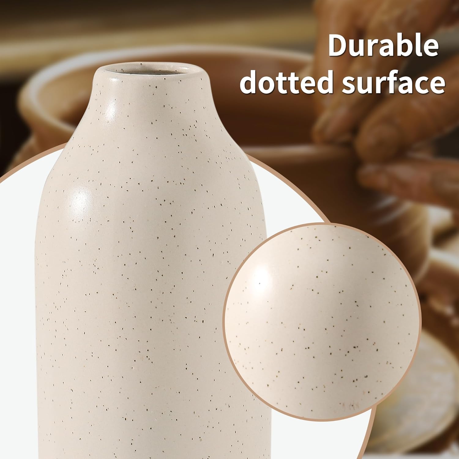 - Masterful Ceramic Craftsmanship – This vase set of 3 is meticulously crafted from premium clay and fired at high temperatures for lasting durability. Featuring a dotted pattern and a corrosion-resistant surface, the vases also have a waterproof interior, making them ideal for holding fresh flowers and preserving their vibrancy. They also elegantly showcase artificial plants and dried flowers, adding a timeless charm to your home.