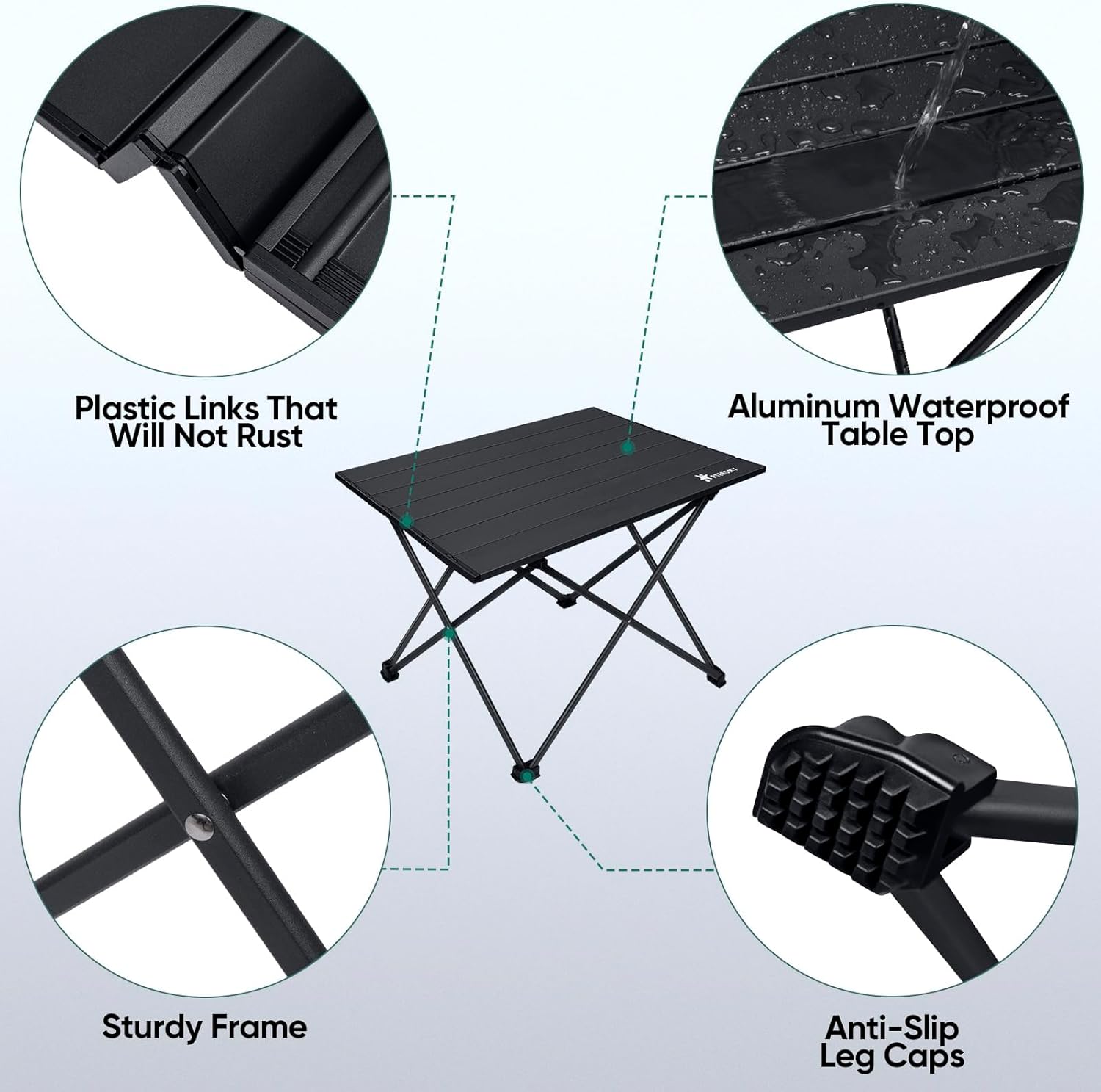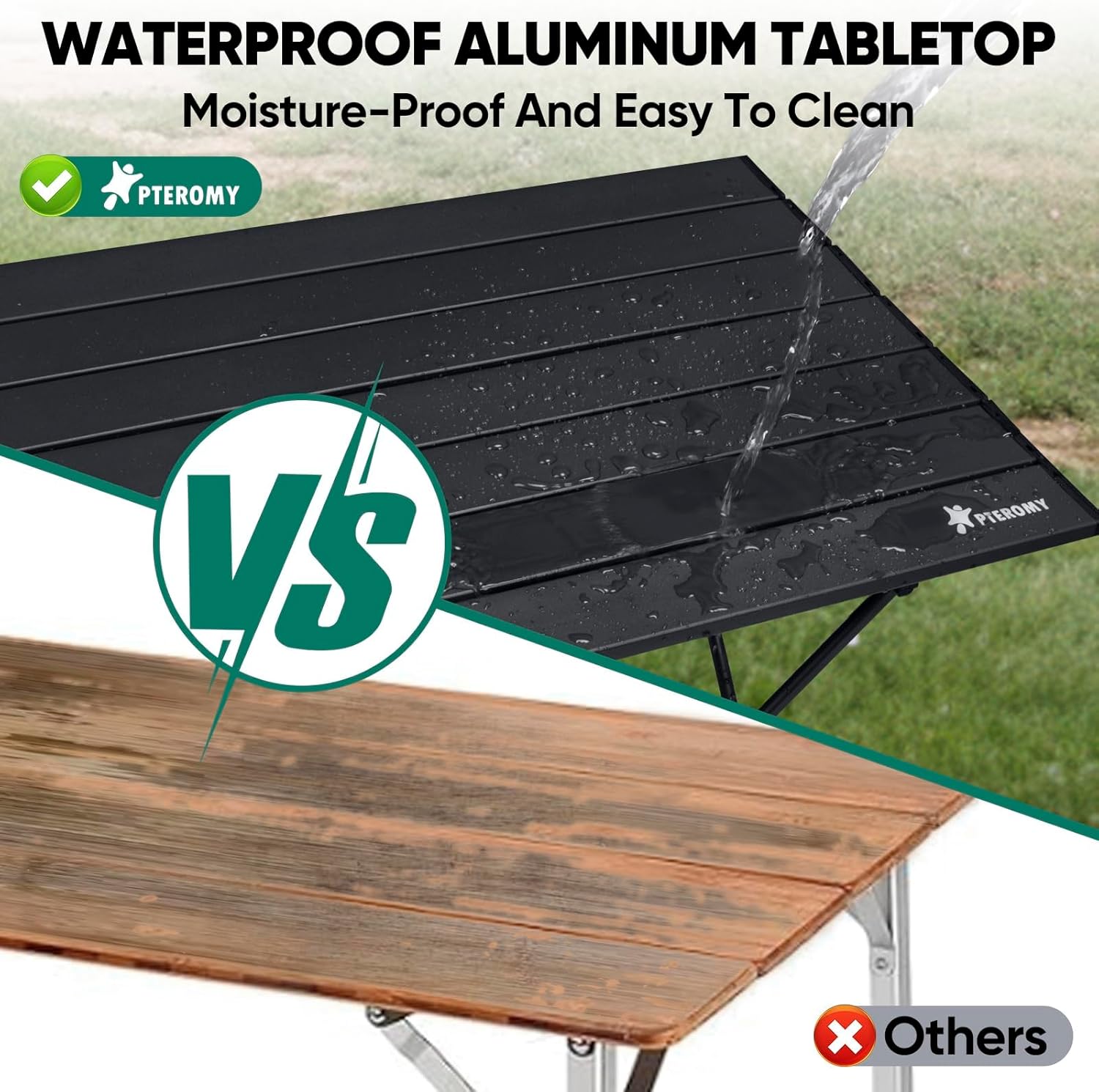 - Ultralight and Portable: PTEROMY Small camping folding table features a waterproof aluminum tabletop and frame, making it lightweight, rust-resistant, and easy to clean; It folds compactly into an included Oxford cloth storage bag, ensuring effortless portability for all your outdoor activities