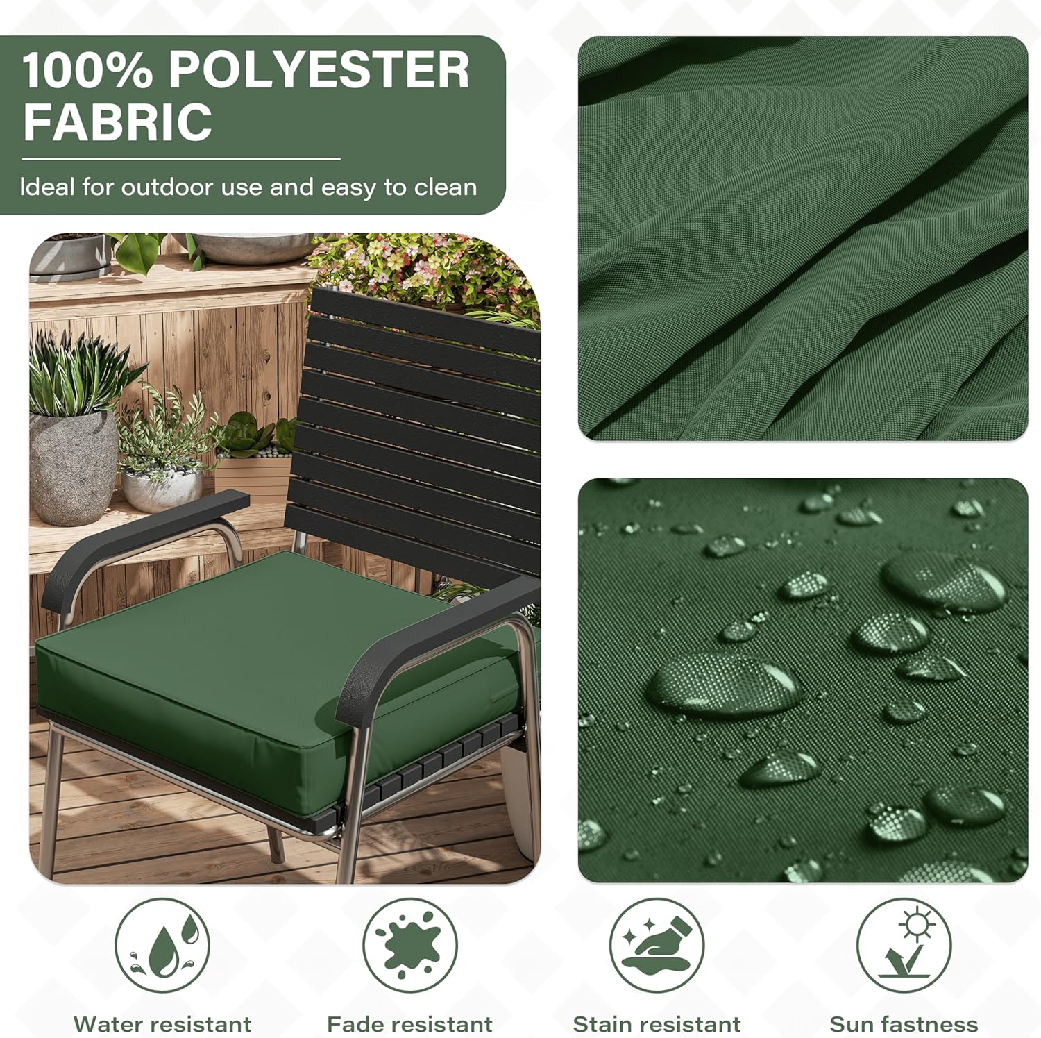 Patio Chair Cushions 19 X 19 X 4 Inch Waterproof Outdoor Seat Cushions for Patio Furniture, Outdoor Sofa Couch Pads with Ties & Handle, Set of 2, Green