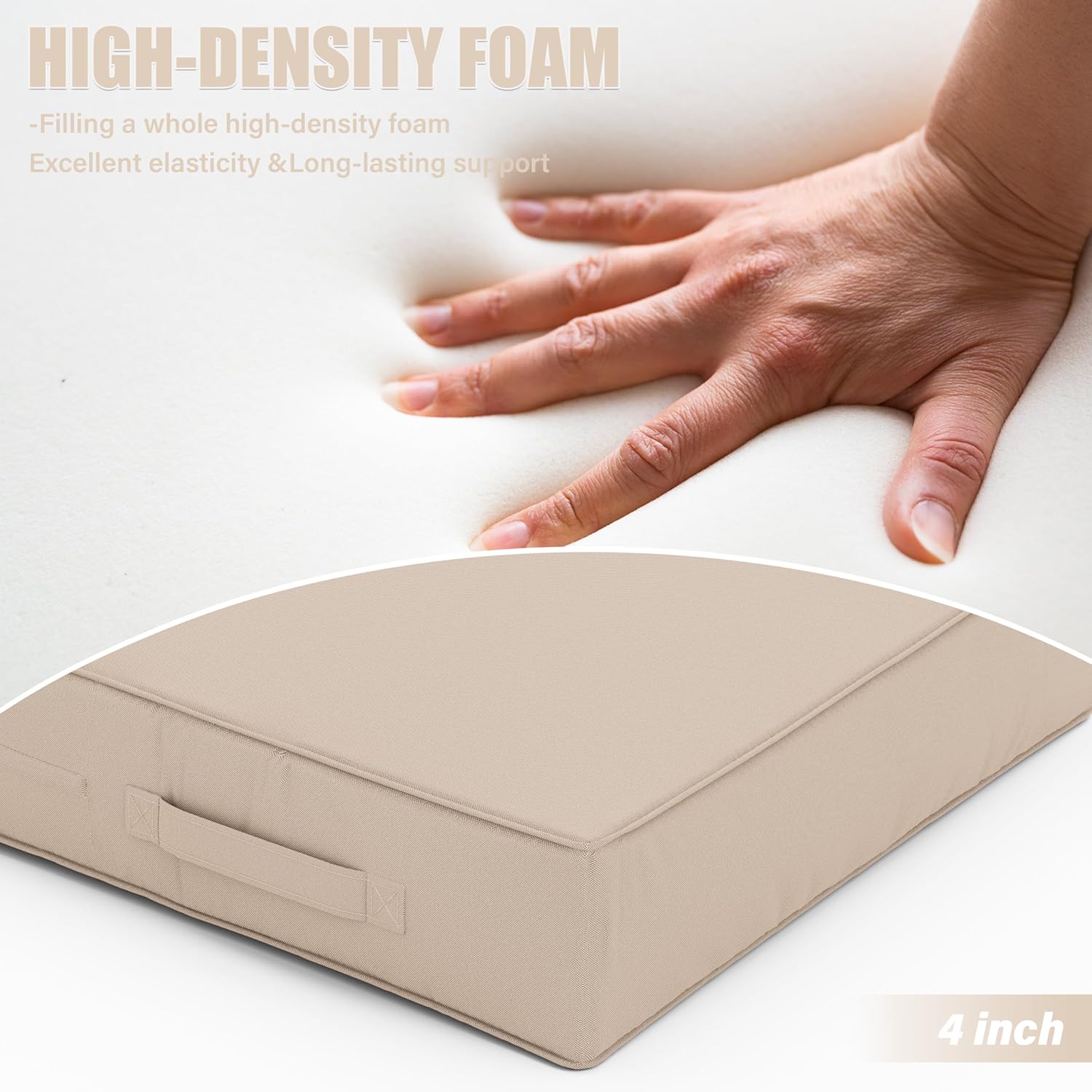Patio Chair Cushions 18.5 X 16 X 4 Inch Waterproof Outdoor Seat Cushions for Patio Furniture, Outdoor Sofa Couch Pads with Ties & Handle, Set of 2, Sand