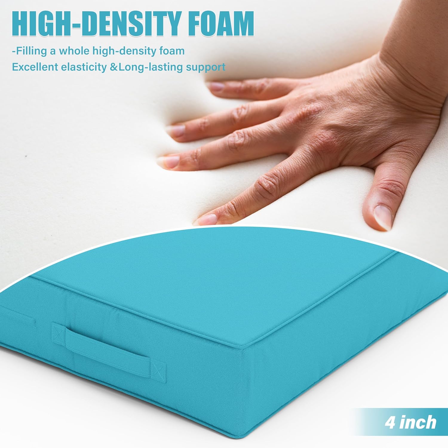 Patio Chair Cushions 18.5 X 16 X 4 Inch Waterproof Outdoor Seat Cushions for Patio Furniture, Outdoor Sofa Couch Pads with Ties & Handle, Set of 2, Lake Blue