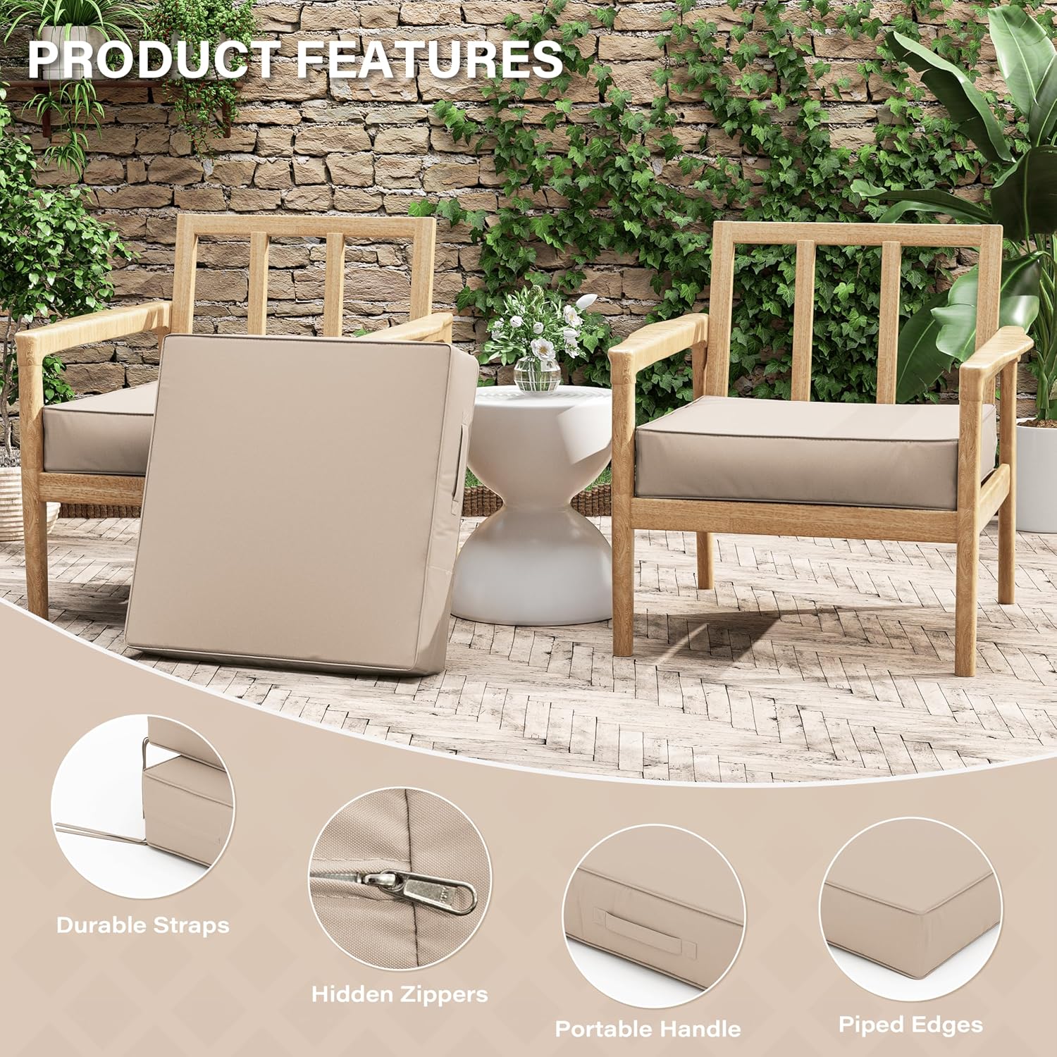 - 🎄 WEATHERPROOF - The Patio Furniture Chair Cushion is made of double-layer waterproof coated fabric that is waterproof on all sides, keeping the rain out and keeping the foam dry and tidy. Even in bad weather, it looks brand new with just a little care from you!