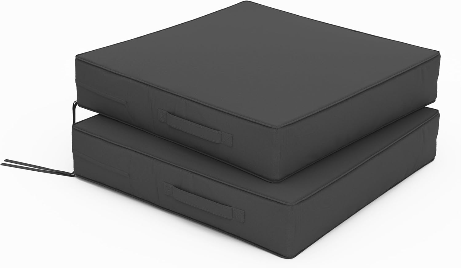 Patio Chair Cushions 22 X 22 X 4 Inch Waterproof Outdoor Seat Cushions for Patio Furniture, Outdoor Sofa Couch Pads with Ties & Handle, Set of 2, Grey