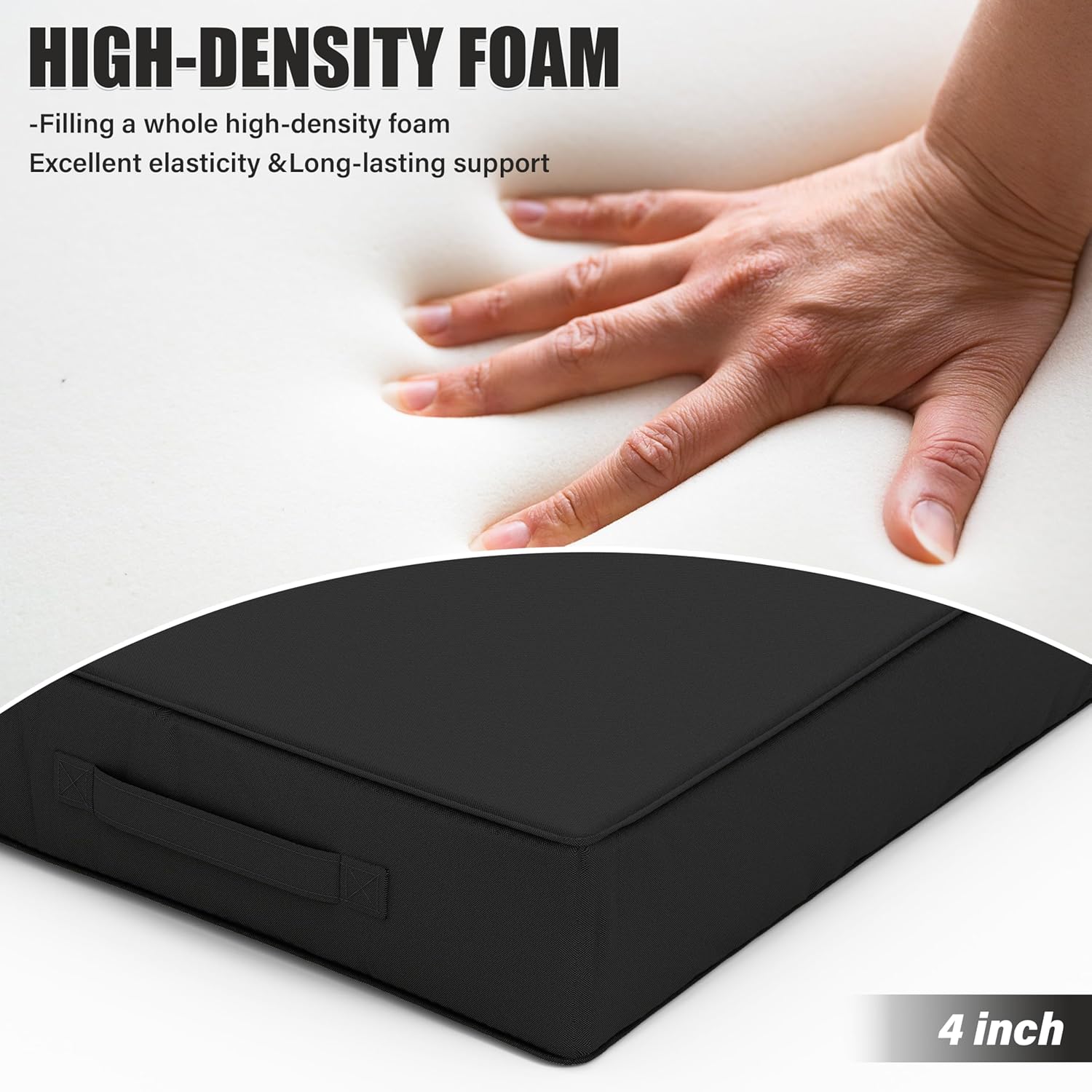 Patio Chair Cushions 22 X 22 X 4 Inch Waterproof Outdoor Seat Cushions for Patio Furniture, Outdoor Sofa Couch Pads with Ties & Handle, Set of 2, Black