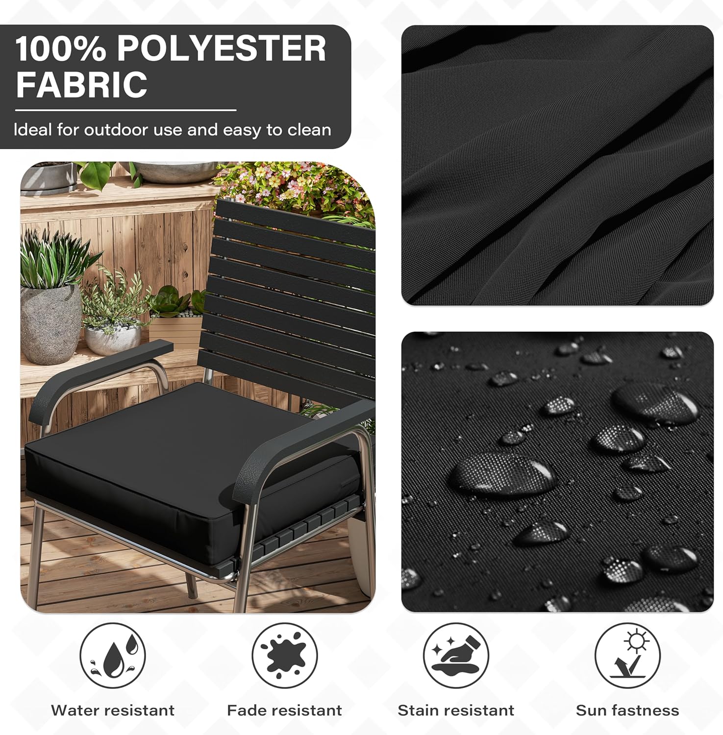 - 🎄 WEATHERPROOF - The Patio Furniture Chair Cushion is made of double-layer waterproof coated fabric that is waterproof on all sides, keeping the rain out and keeping the foam dry and tidy. Even in bad weather, it looks brand new with just a little care from you!