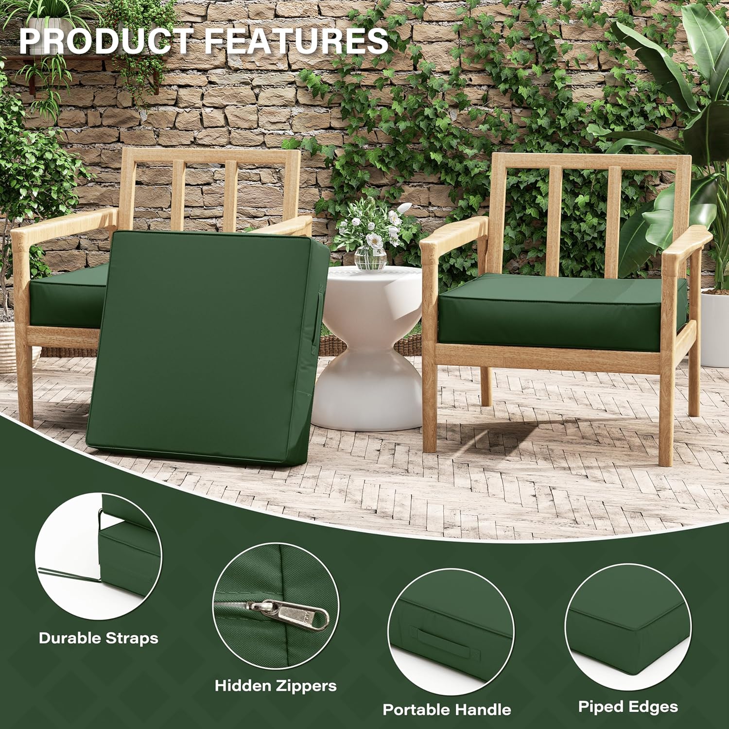 Patio Chair Cushions 24 X 24 X 5 Inch Waterproof Outdoor Seat Cushions for Patio Furniture, Outdoor Sofa Couch Pads with Ties & Handle, Set of 2, Green