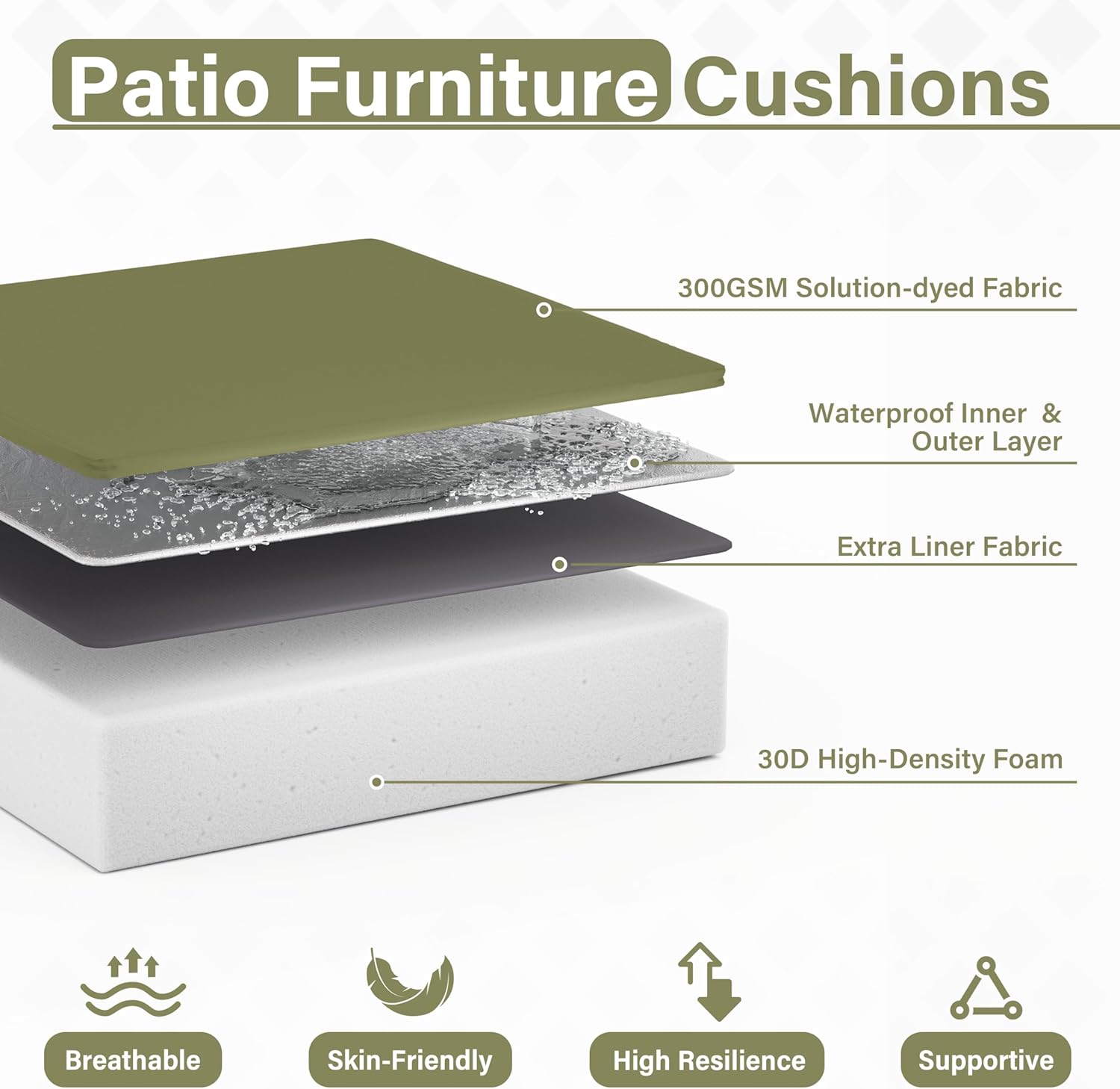 - 🎄 WEATHERPROOF - The Patio Furniture Chair Cushion is made of double-layer waterproof coated fabric that is waterproof on all sides, keeping the rain out and keeping the foam dry and tidy. Even in bad weather, it looks brand new with just a little care from you!