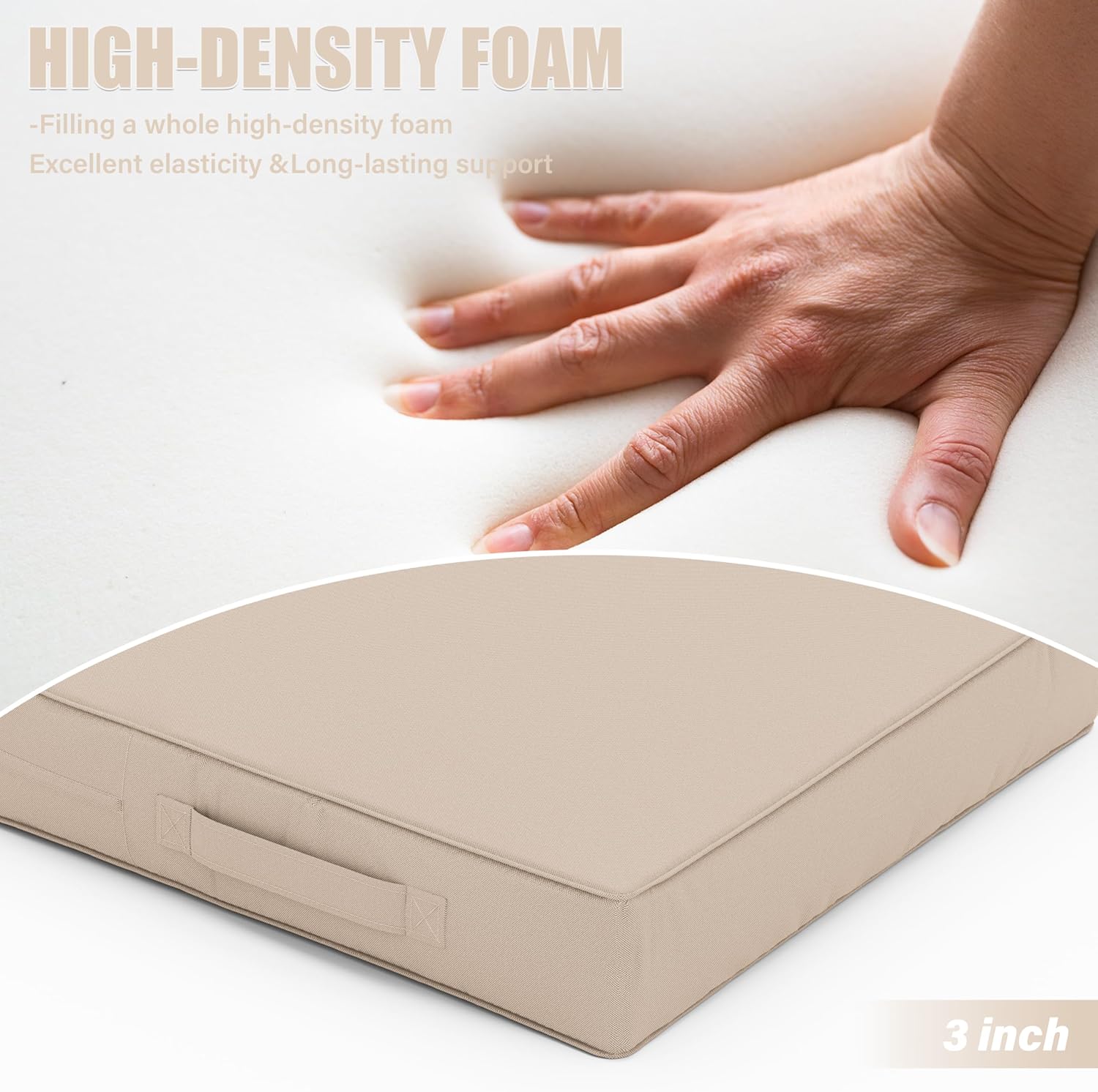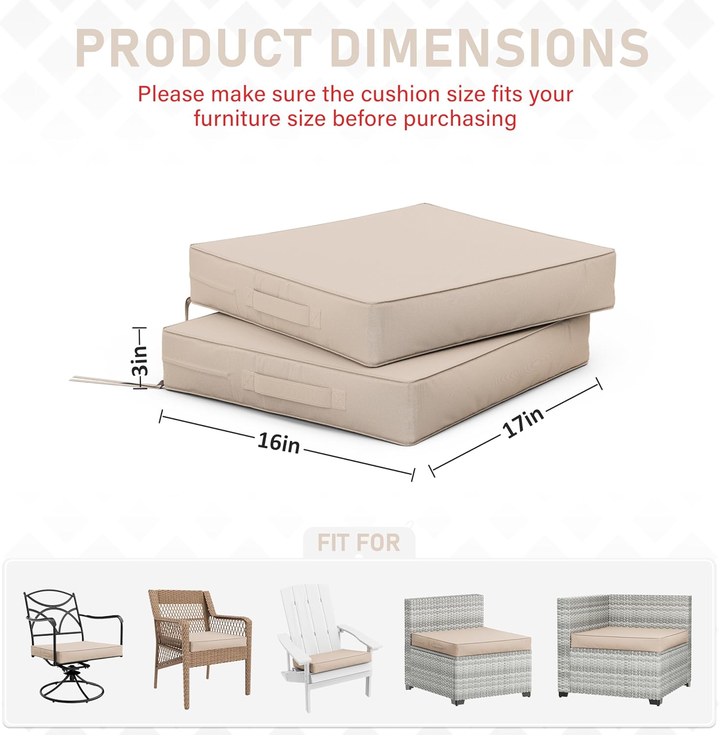 Patio Chair Cushions 17 X 16 X 3 Inch Waterproof Outdoor Seat Cushions for Patio Furniture, Outdoor Sofa Couch Pads with Ties & Handle, Set of 2, Sand