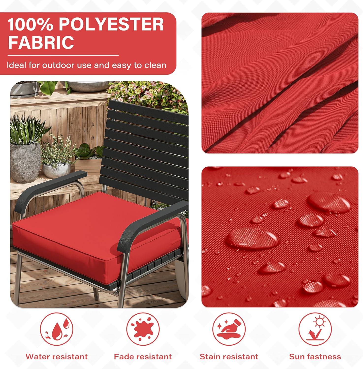 Patio Chair Cushions 18.5 X 16 X 4 Inch Waterproof Outdoor Seat Cushions for Patio Furniture, Outdoor Sofa Couch Pads with Ties & Handle, Set of 2, Red