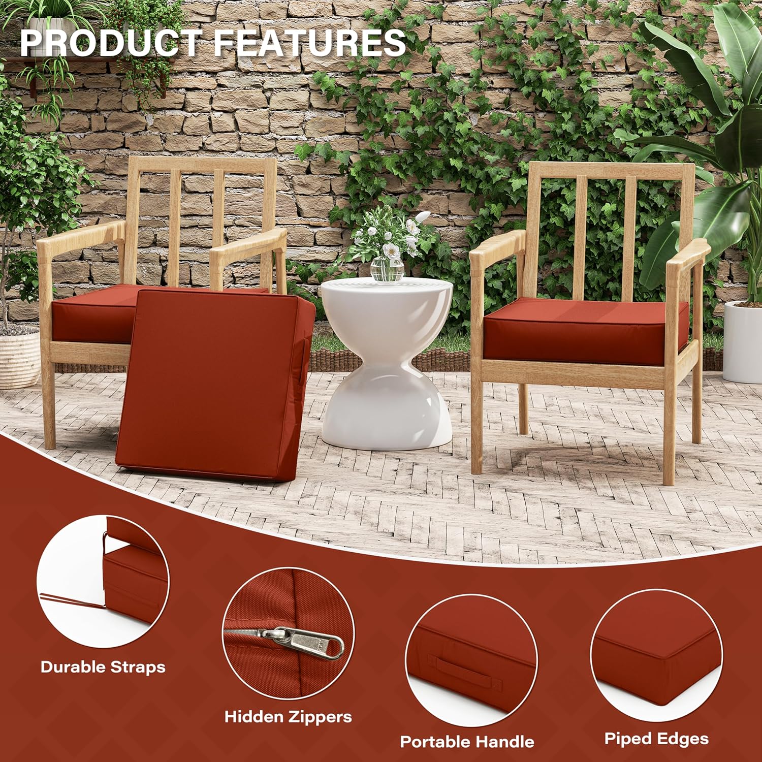 Patio Chair Cushions 19 X 19 X 4 Inch Waterproof Outdoor Seat Cushions for Patio Furniture, Outdoor Sofa Couch Pads with Ties & Handle, Set of 2, Terra Red