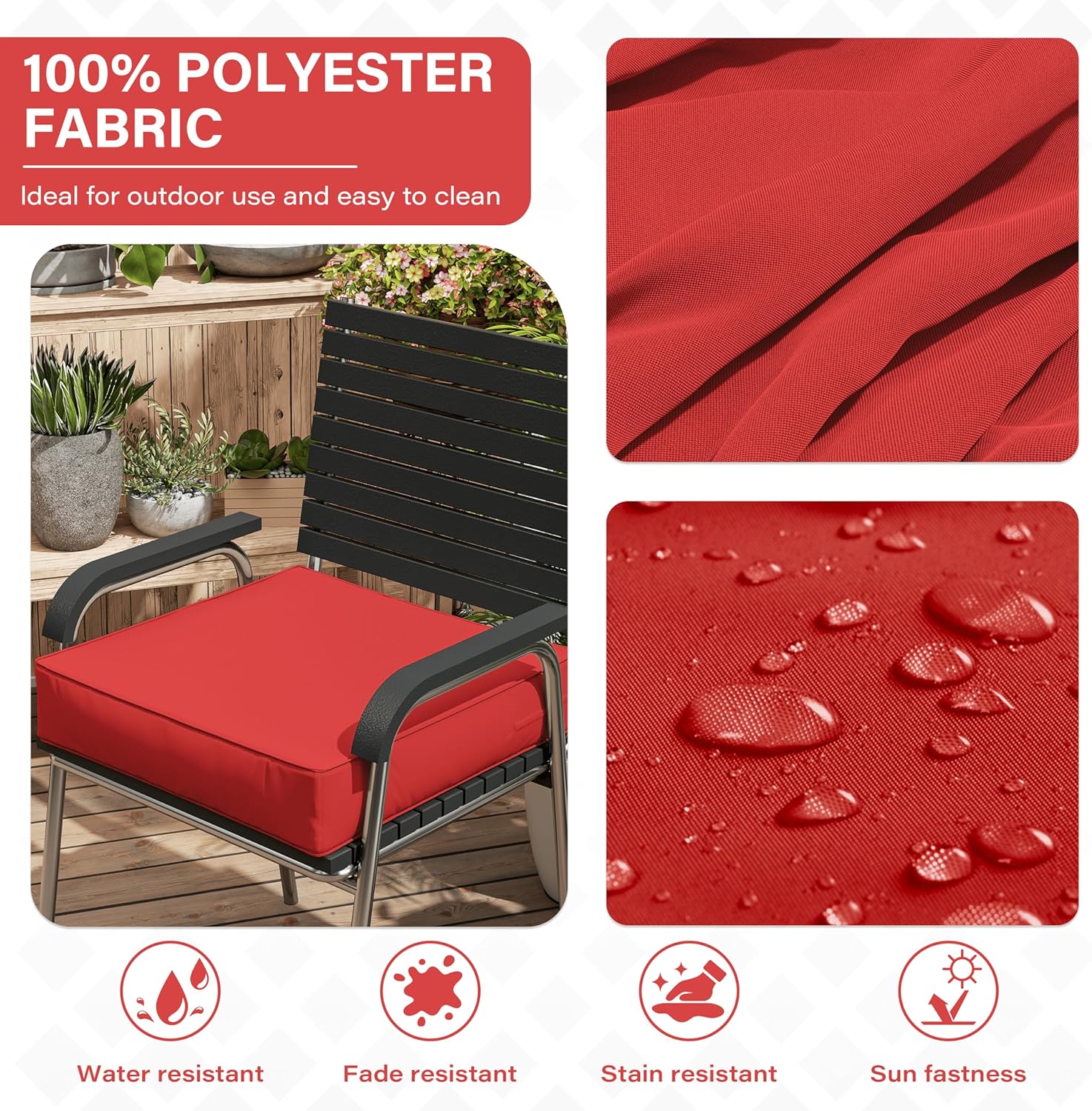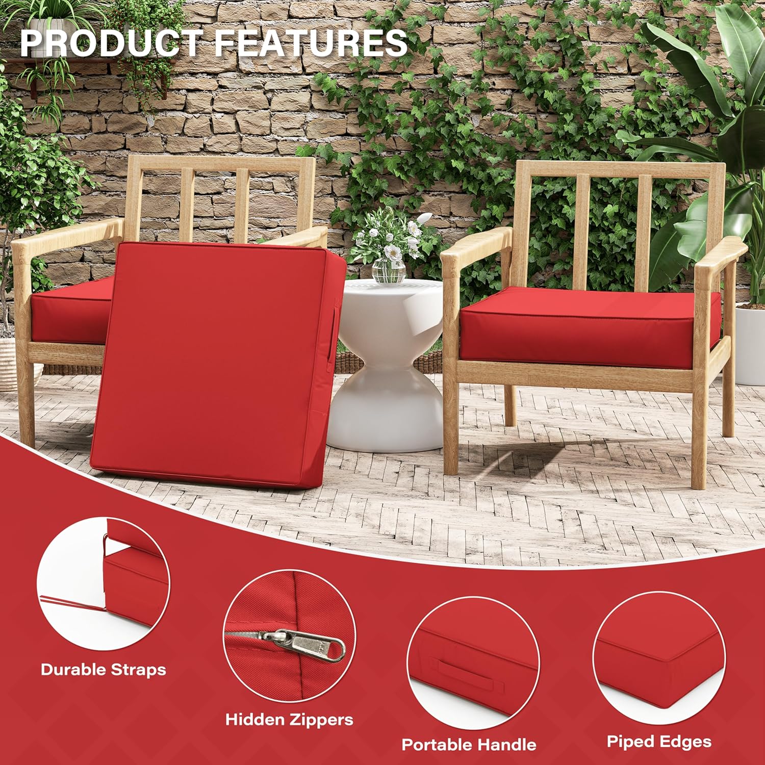 Patio Chair Cushions 24 X 24 X 5 Inch Waterproof Outdoor Seat Cushions for Patio Furniture, Outdoor Sofa Couch Pads with Ties & Handle, Set of 2, Red