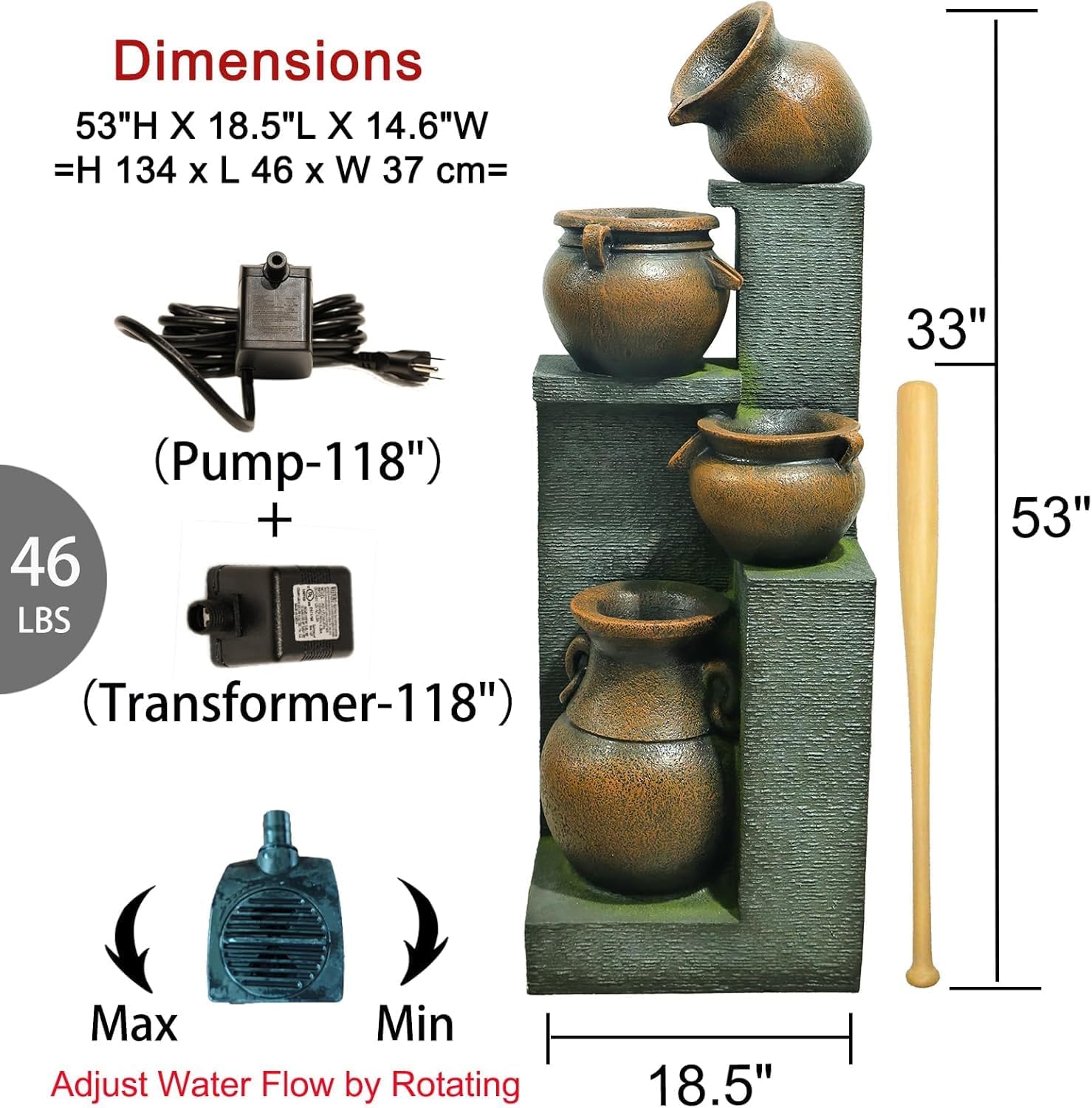 - Durable Design with Safety Guarantee: The Tall garden water fountain is made of High-quality resin materials, which is resistant to heat, wind and rain, without worrying about short-term breakage. UL Certification, 30 Days Hassle-Free Returns, 1-Year Warranty. If You Have Any Problems About The Yard Water Fountain Or Need Any Other Support, Please Feel Free To Contact Us Through Amazon, We Will Respond Within 16 Hours.