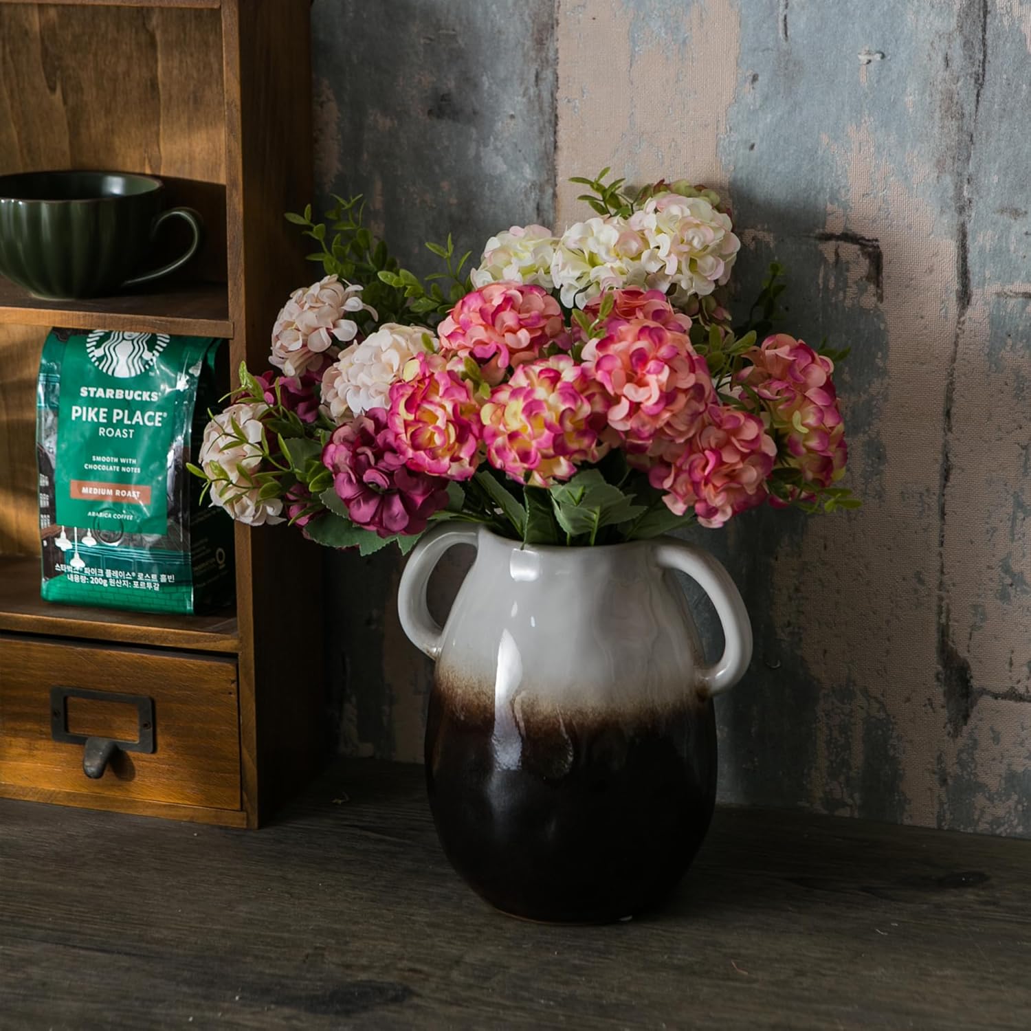 White Gradient Ceramic Vase with 2 Handles, Modern Farmhouse Decor, Rustic Terracotta Pottery, Decorative Flower Vases, Clay Small Vase, Centerpiece for Dining Table - 7 Inch Tall