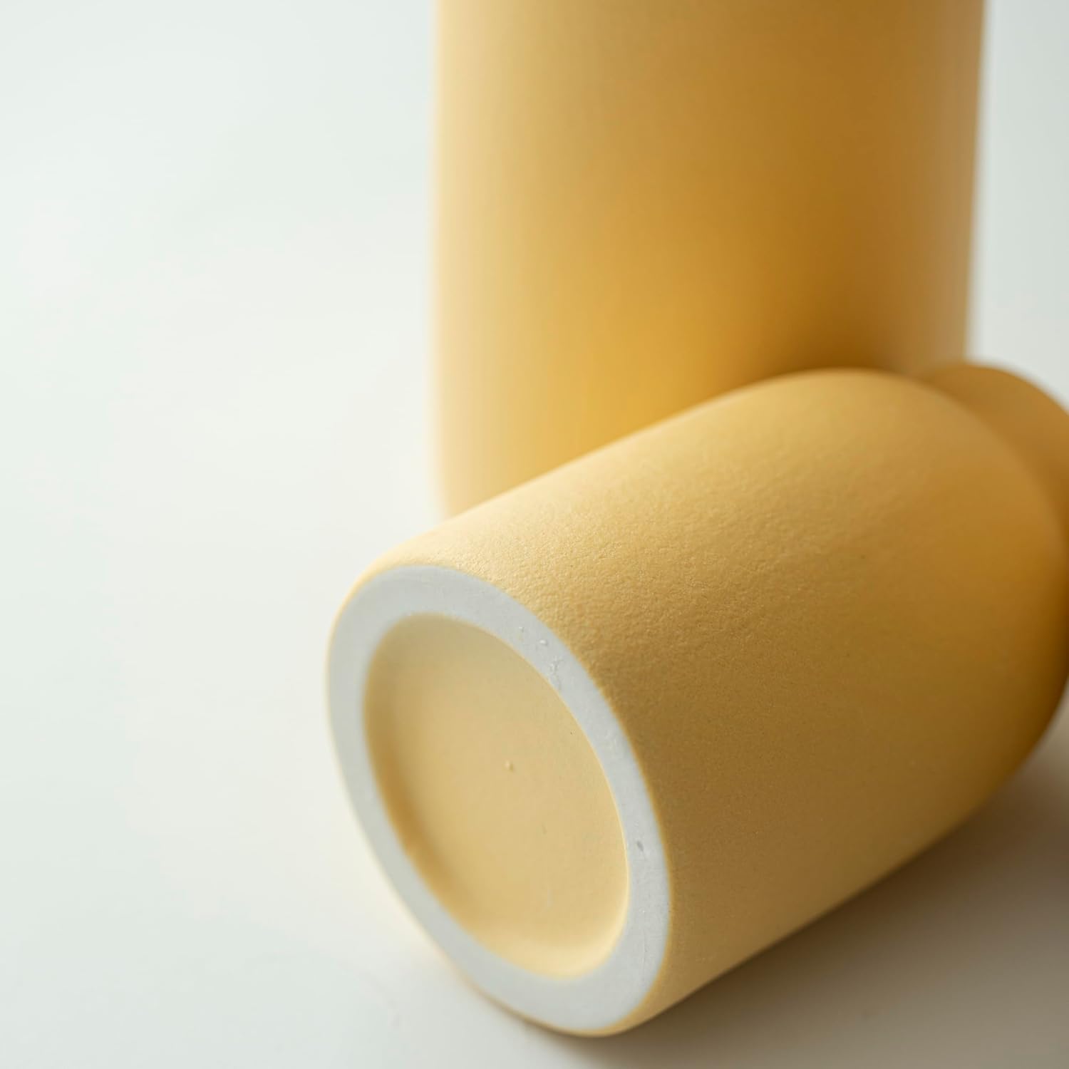 Ceramic Vase Set-3, Small Flower Vases for Decor, Modern Boho Farmhouse Style, Decorative Vases for Pampas Grass & Dried Flowers, Distressed Finish (Yellow)