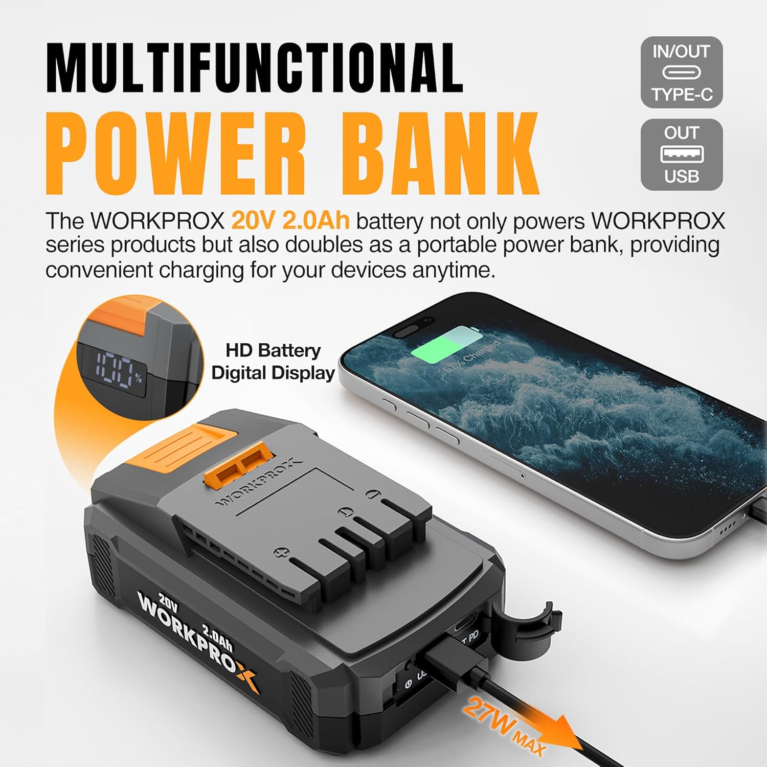 - Powerful & Multi-functional: The 20V 2.0Ah battery provides robust power for the power hedge trimmer, offering 25 minutes of efficient runtime. Featuring a built-in display, press a button to check the battery level. Check battery level at a glance with the integrated display. (Tip: We recommend using a 30W charger for an ultra-fast 1.5-hour recharge. Note: A charging adapter is not included.)