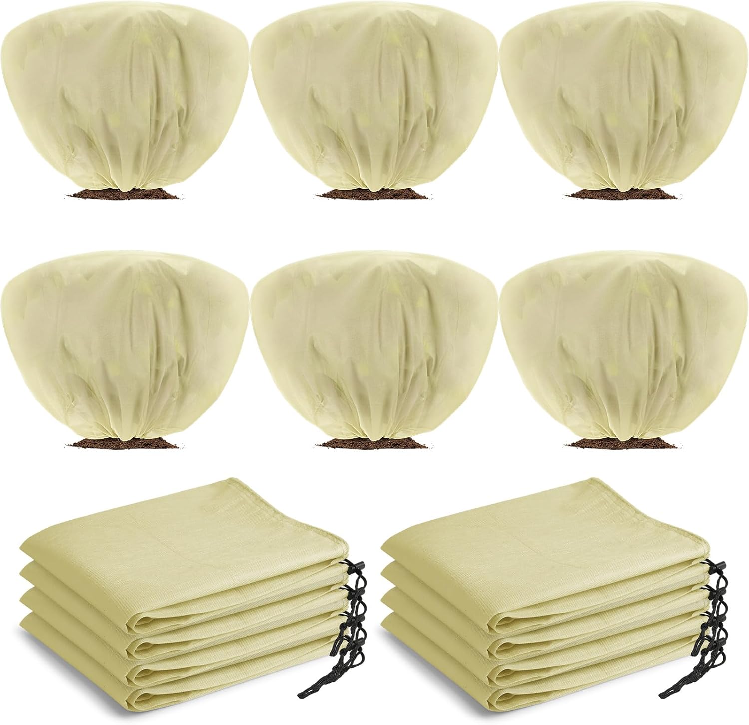 - Drawstring Design: the opening of frost protection covers for plants is designed with a drawstring, which can be easily fixed and removed by simply pulling the drawstring, and will not be easily blown away by the wind, allowing you to cover plants more easily and quickly in bad weather, stable and convenient
