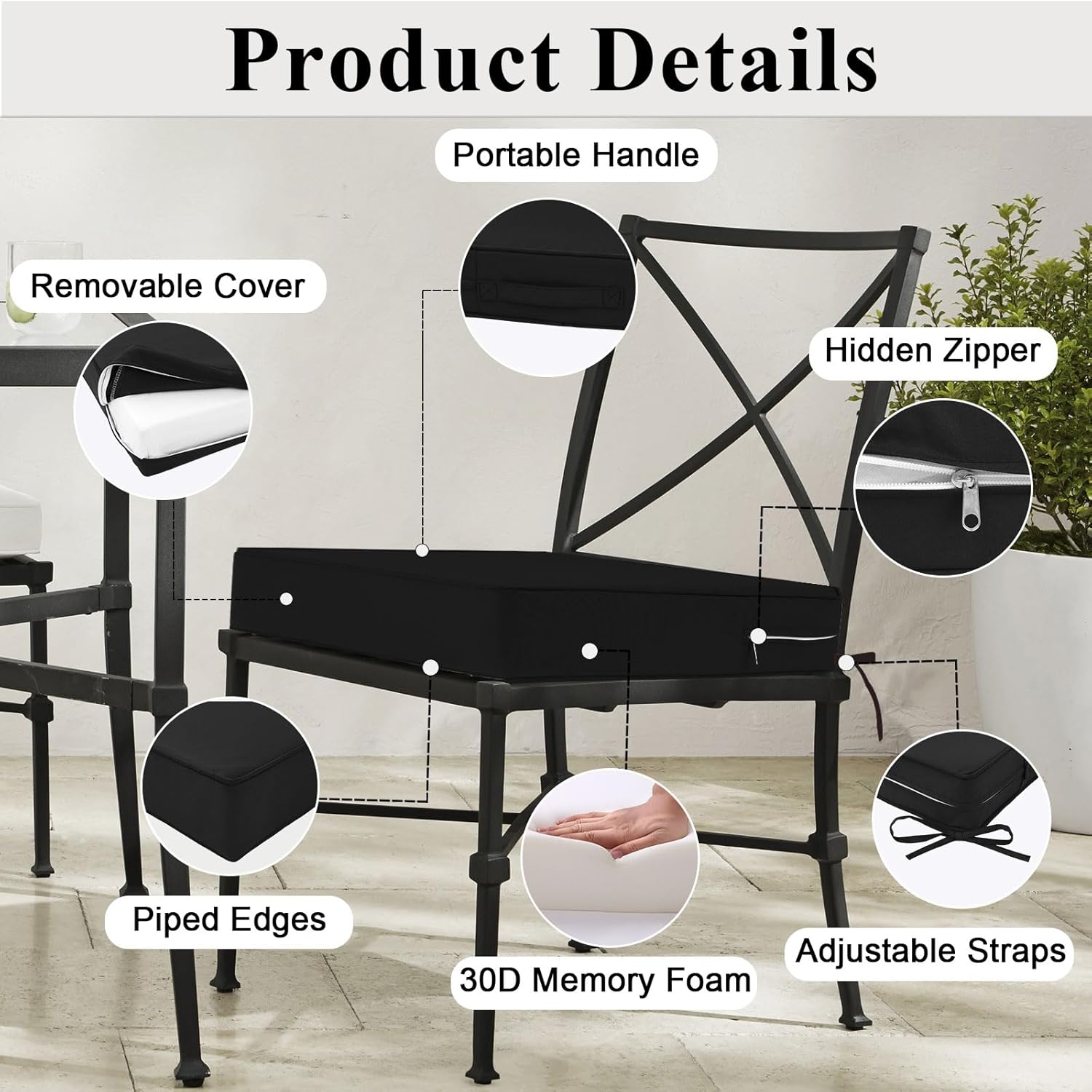 - ADJUSTABLE STRAPS & CARRYING HANDLES: MJIAIDEA outdoor chair cushions are designed with a delicate and convenient handle and two adjustable straps.The 2 adjustable straps can be easily fastened to different sizes and types of chairs and sofas, securely fixing them to your outdoor chairs and preventing them from sliding easily. The carrying handle makes it easy to carry, change or clean the cushion cover at any time