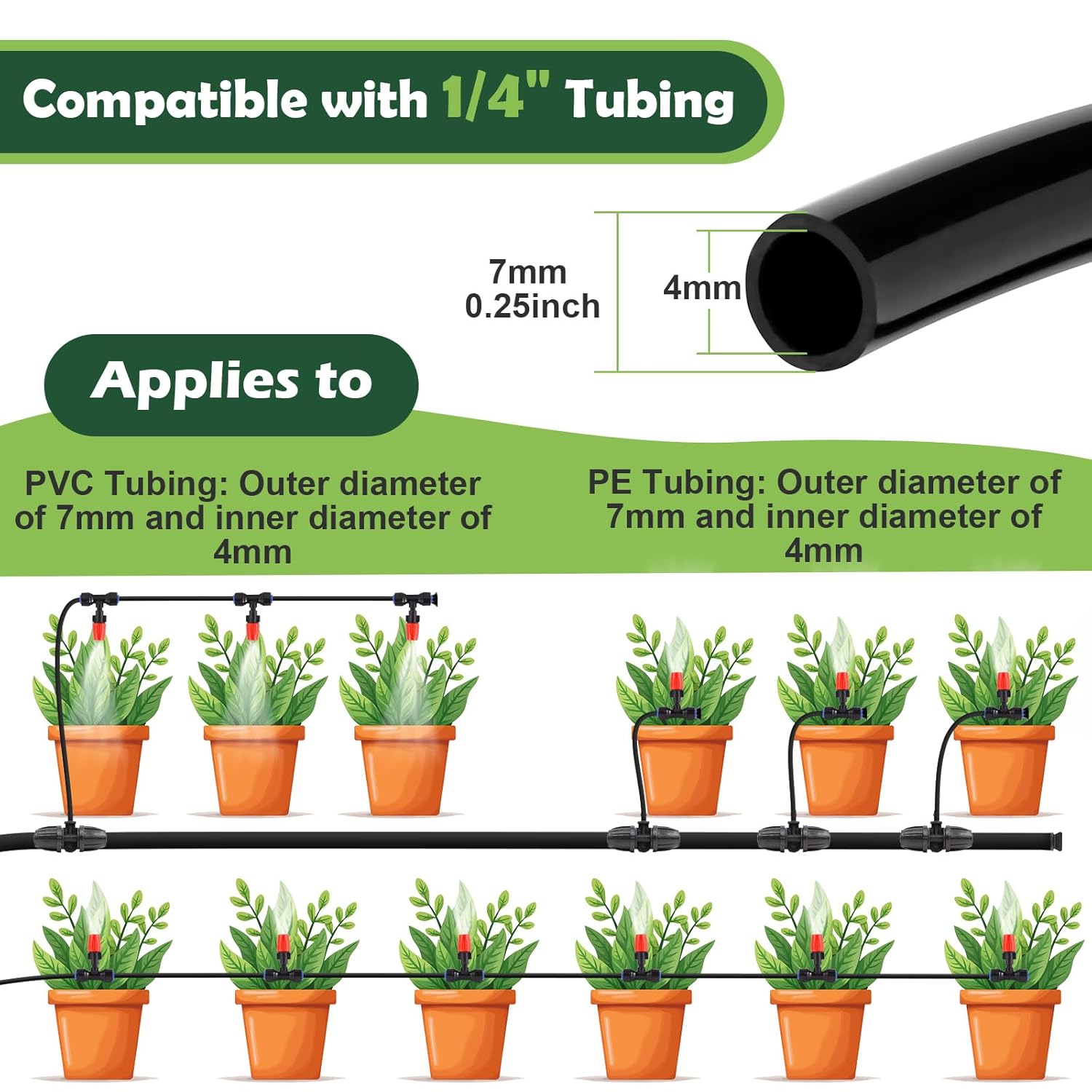 - Quick & Push-to-Connect: Staypot’s drip irrigation emitters feature a quick-connect design, ensuring a secure, leak-proof fit. Installation is hassle-free and compatible with 1/4" drip irrigation tubing (outer diameter less than 0.7mm). The durable materials guarantee a long-lasting connection, making it an ideal choice for DIY garden projects.