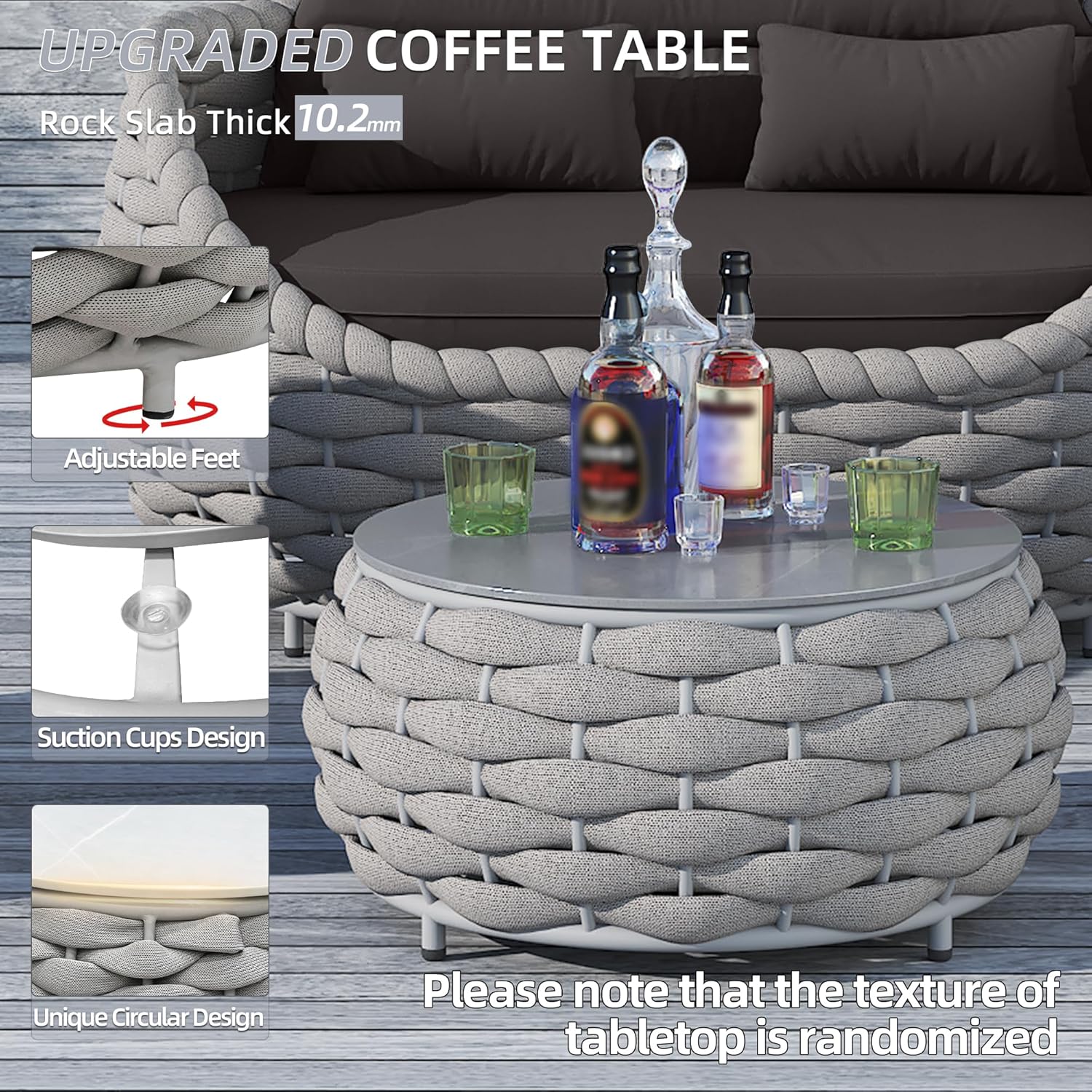 - Sturdy & Durable:This outdoor sectional sofa sets with high quality aluminum alloy,no rust,no deformation,hand woven polyester rope are strong enough to withstand all weather variations.Outdoor patio furniture set cushions balance well with sturdy frame
