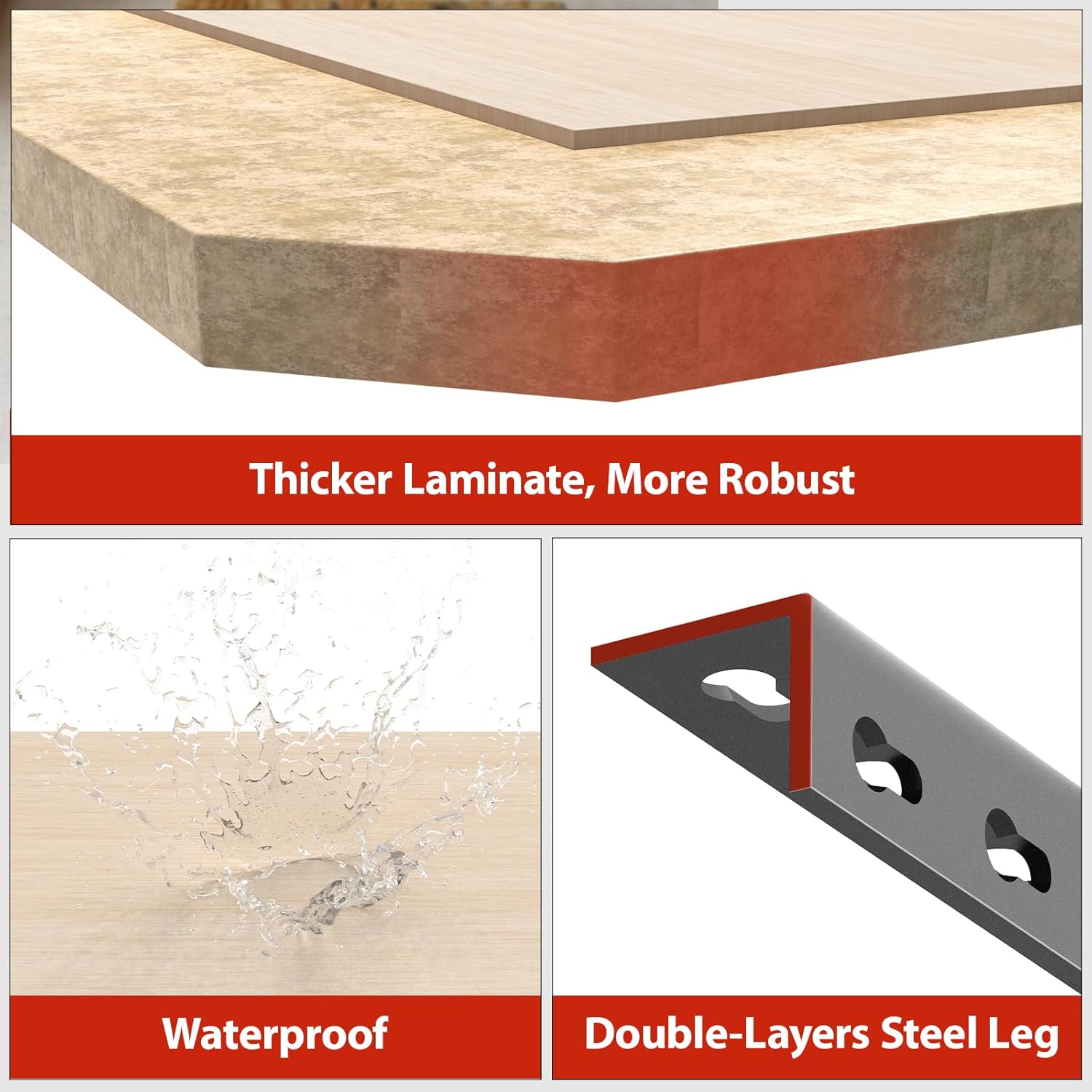 - 【Durable Construction】: Heavy-duty laminated boards paired with thickened steel frames resist warping; scratch-proof surface withstands sharp tools; moisture-resistant design performs in humid kitchens or damp basements