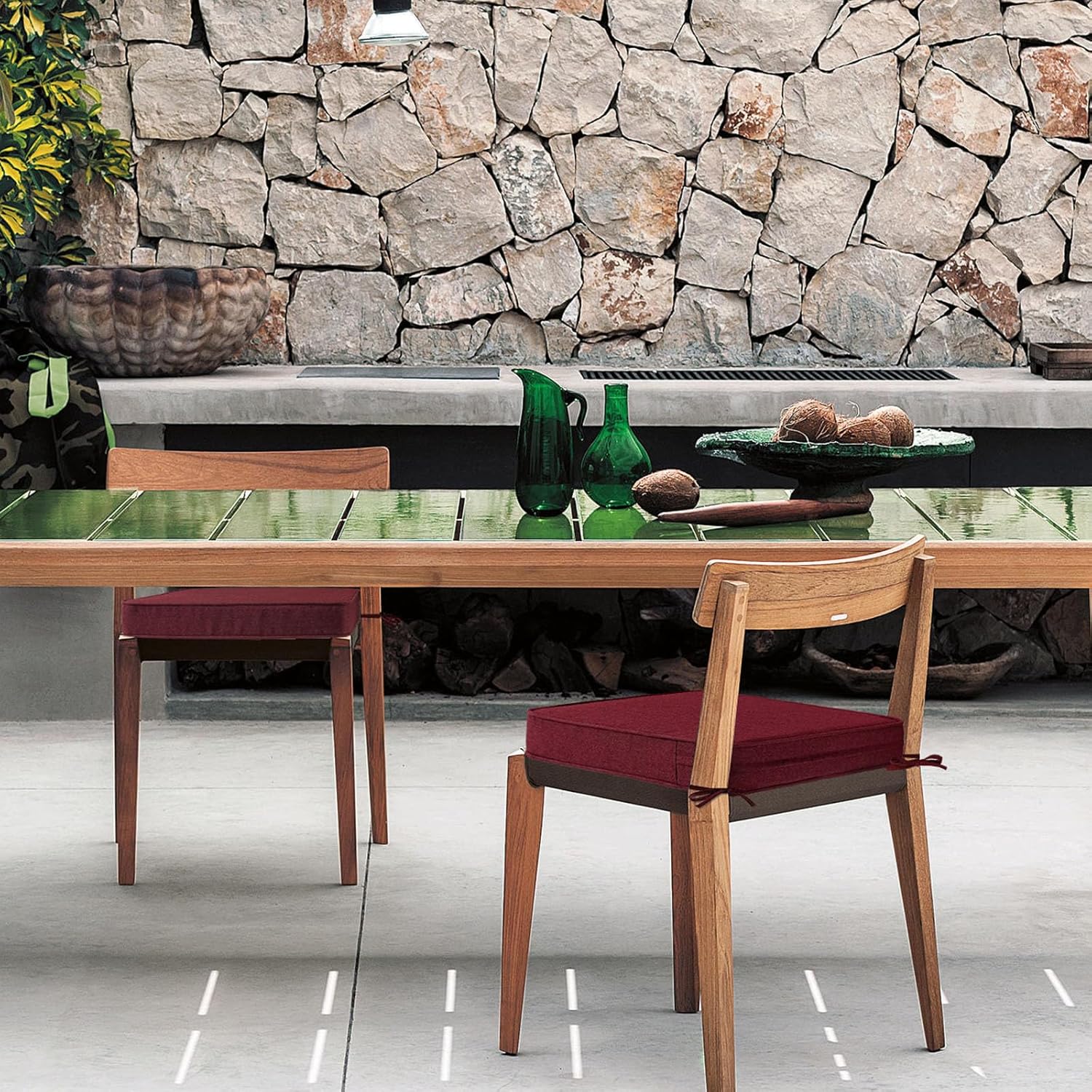 Sunbrella Square Corner Seat Cushions, 19" x 19" x 3", Set of 4, Indoor Outdoor Water Repellent Universal Chair Pads with Ties for Patio Furniture, Garden Dining Chairs, Spectrum Ruby