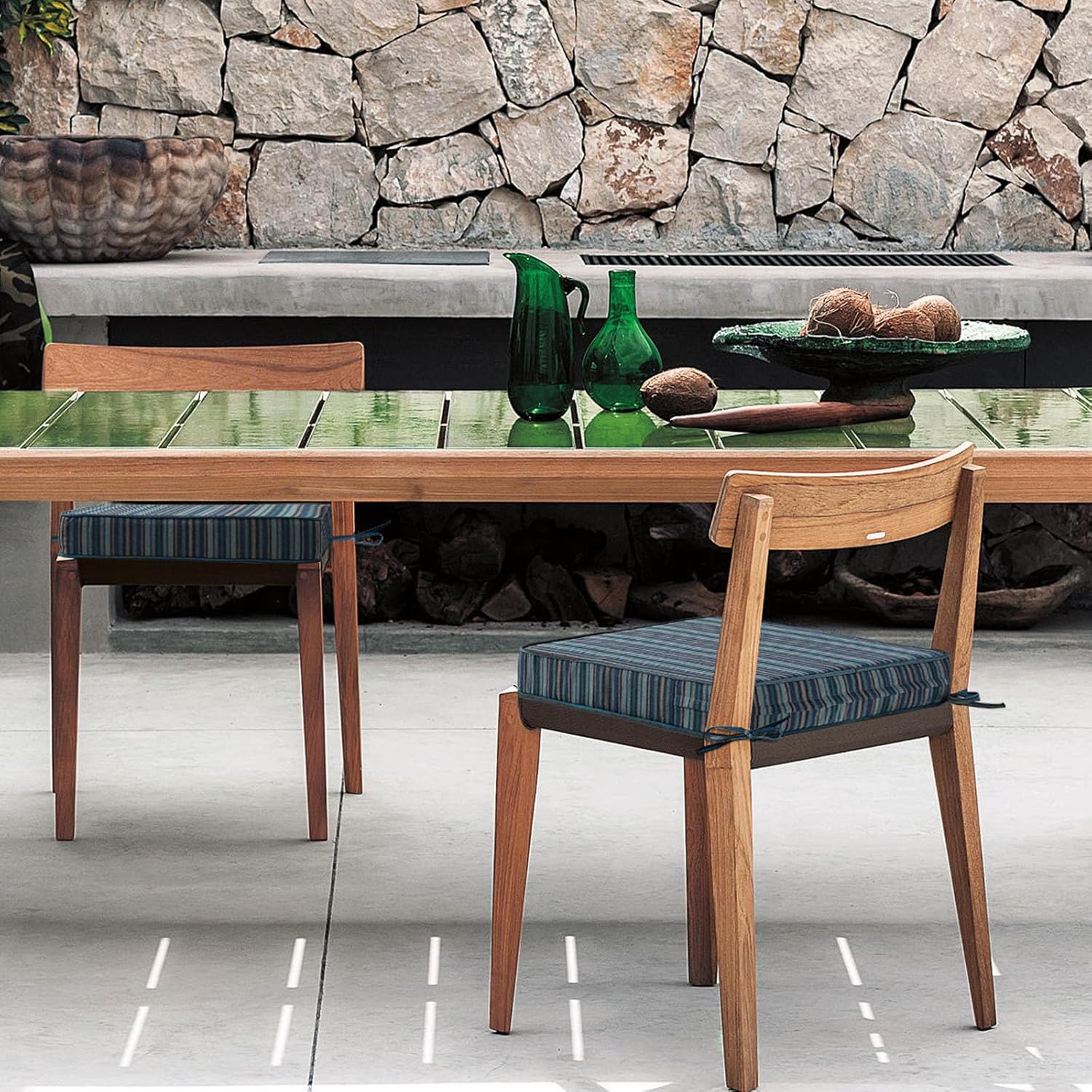 Sunbrella Square Corner Seat Cushions, 19" x 19" x 3", Set of 4, Indoor Outdoor Water Repellent Universal Chair Pads with Ties for Patio Furniture, Garden Dining Chairs, Troupe Dock