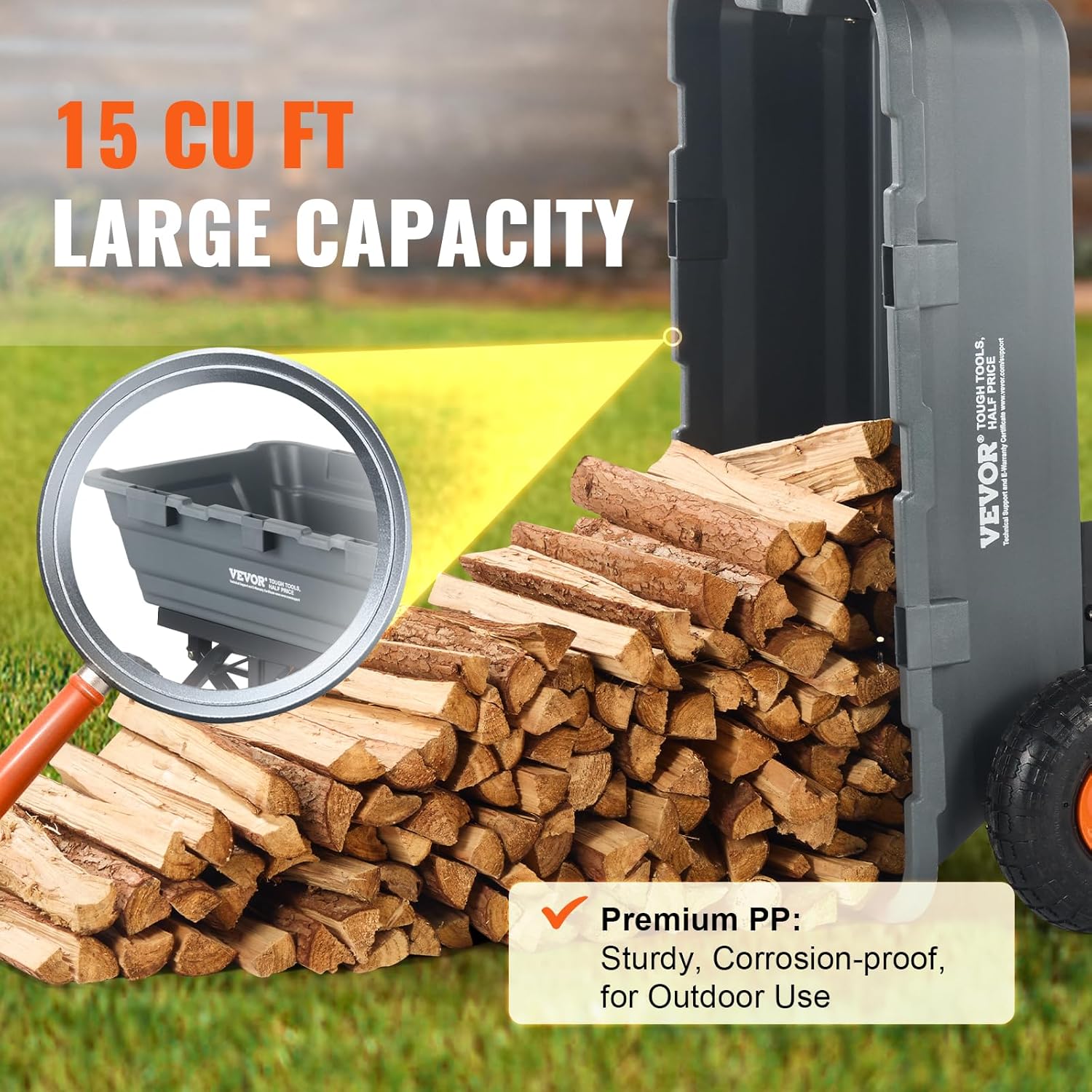 VEVOR 1500lbs Poly Garden Dump Cart Wheelbarrow Wagon with 2 in 1 Convertible Handle, Heavy Duty Yard Cart Wagon for with 13in All Terrain Wheels, Dump Trailer Tow Behind for Lawn Mower Tractor