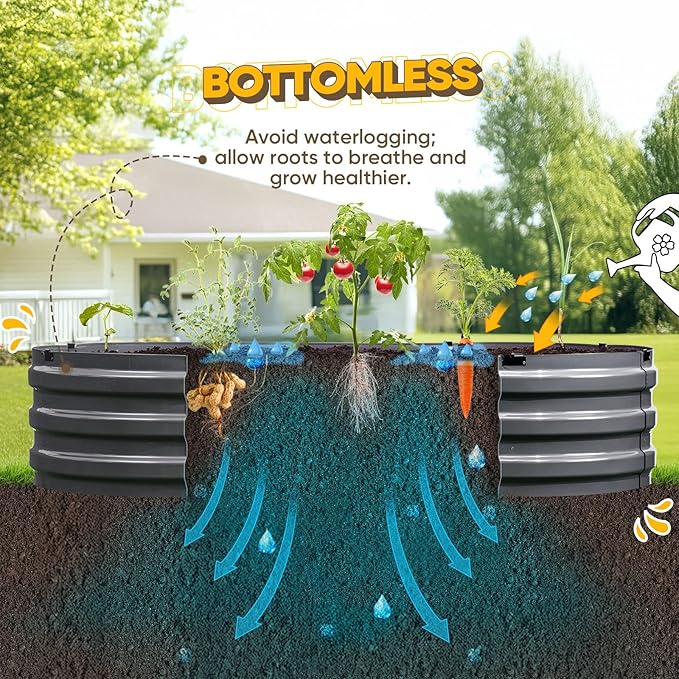 - 【Safe Rolled Edges】The edges of the metal raised garden beds are meticulously crafted with a rolled edge process, eliminating sharp edges to ensure your hands stay safe from cuts during assembly and planting, letting you safely enjoy the pleasure of gardening.