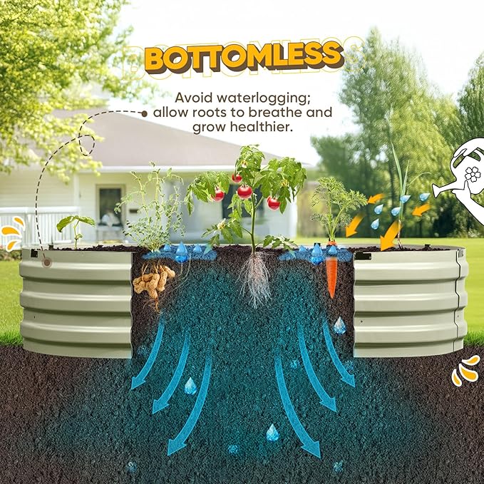- 【Safe Rolled Edges】The edges of the metal raised garden beds are meticulously crafted with a rolled edge process, eliminating sharp edges to ensure your hands stay safe from cuts during assembly and planting, letting you safely enjoy the pleasure of gardening.