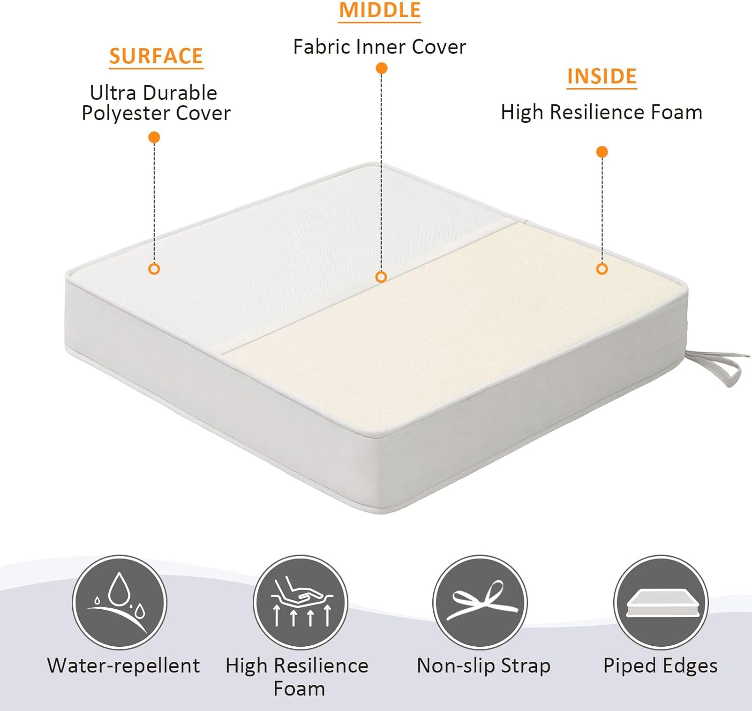 - 【High Resilience Foam】 The Unimatta chair cushions are filled with high-quality 100% foam, high-density sponge offers excellent support and long-lasing comfort. Whether you're enjoying a sunny afternoon or a cool evening, this cushion will keep you cozy.