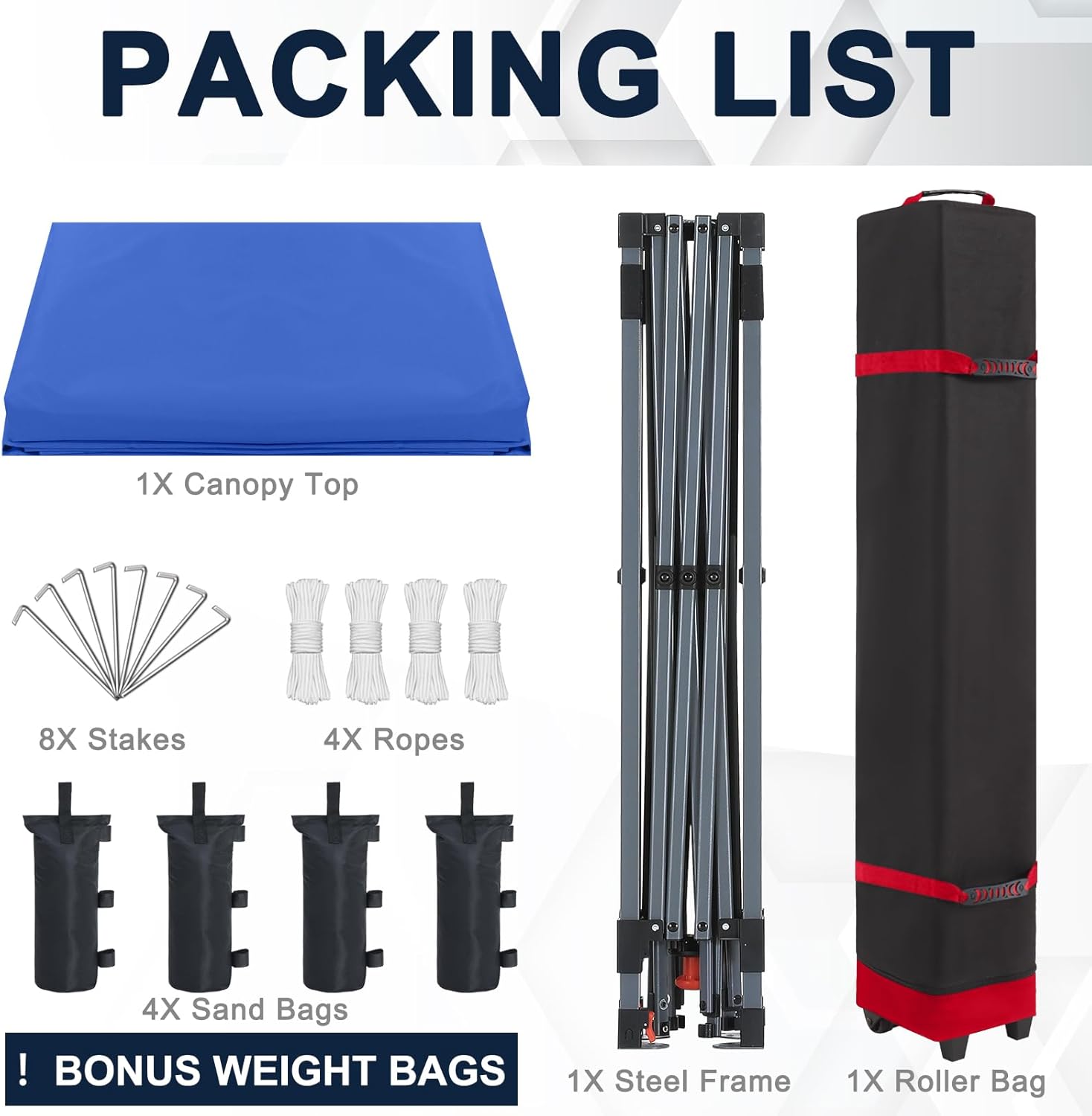 - 【Easy Setup on Seconds】This canopy tent enables 1 person set-up in 1 minute, which uses fully assembled One-Piece frame, no tools needed. Just open the frame, attach the fabric and adjust the legs height. Enjoy the shade quickly and easily under the sun.