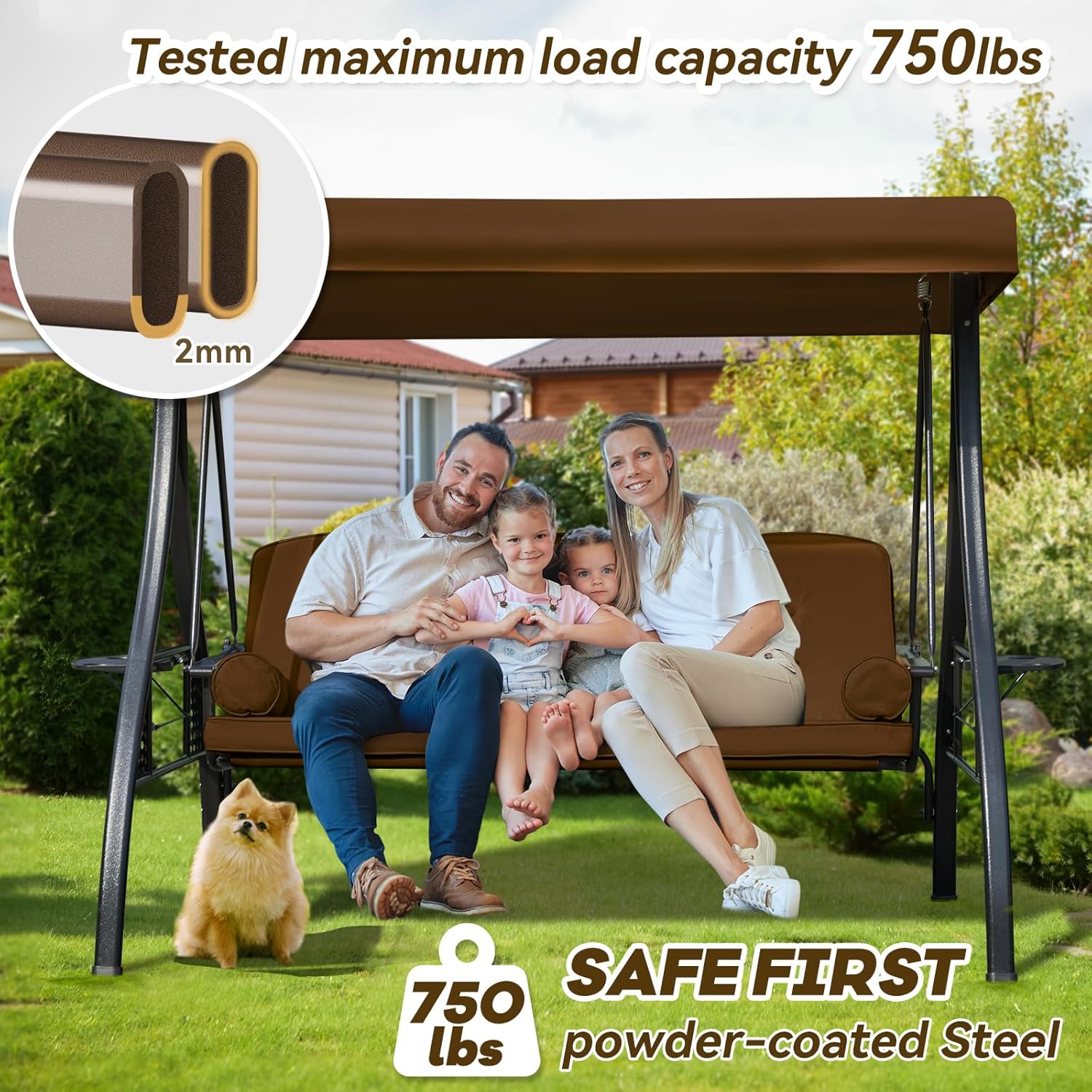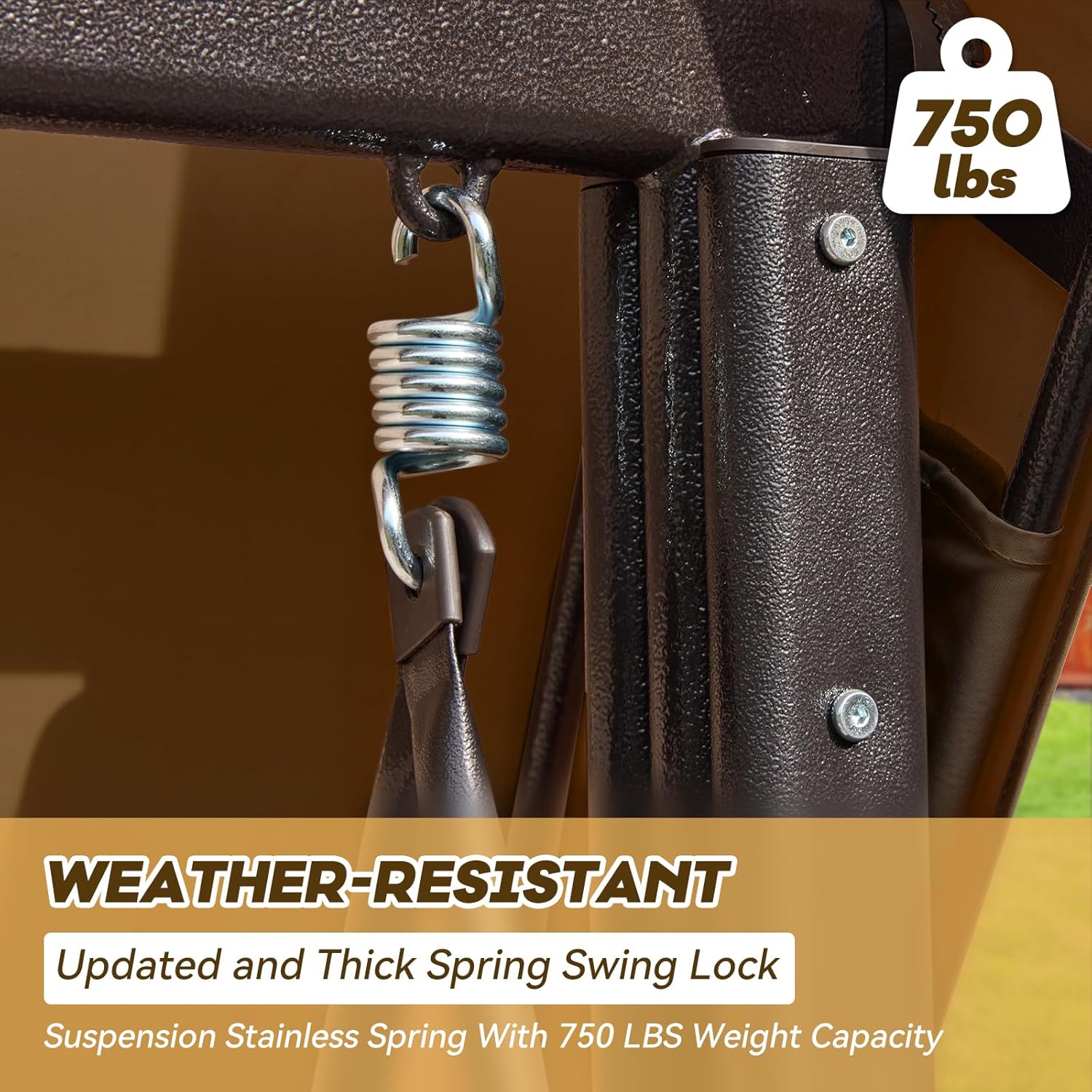 - 【Sturdy and Safe Construction】: The maximum weight capacity of porch swing is 750 pounds, our glider swing is designed for 3 adults to sit comfortably. The swing outdoor has a reliable buckle on backrest, ensuring stability and preventing any unwanted swinging. The double protection of 3 seat garden swing is designed for preventing accidental tipping.