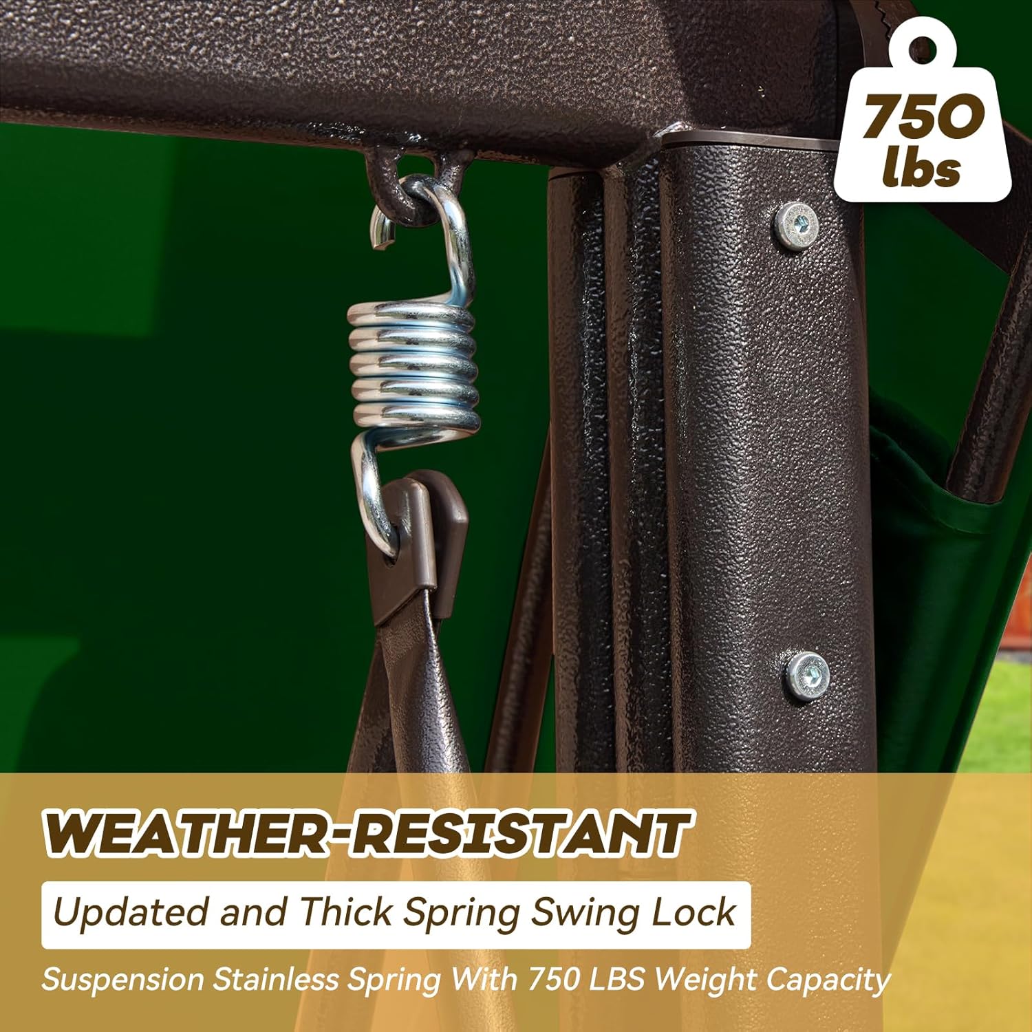 - 【Sturdy and Safe Construction】: The maximum weight capacity of porch swing is 750 pounds, our glider swing is designed for 3 adults to sit comfortably. The swing outdoor has a reliable buckle on backrest, ensuring stability and preventing any unwanted swinging. The double protection of 3 seat garden swing is designed for preventing accidental tipping.