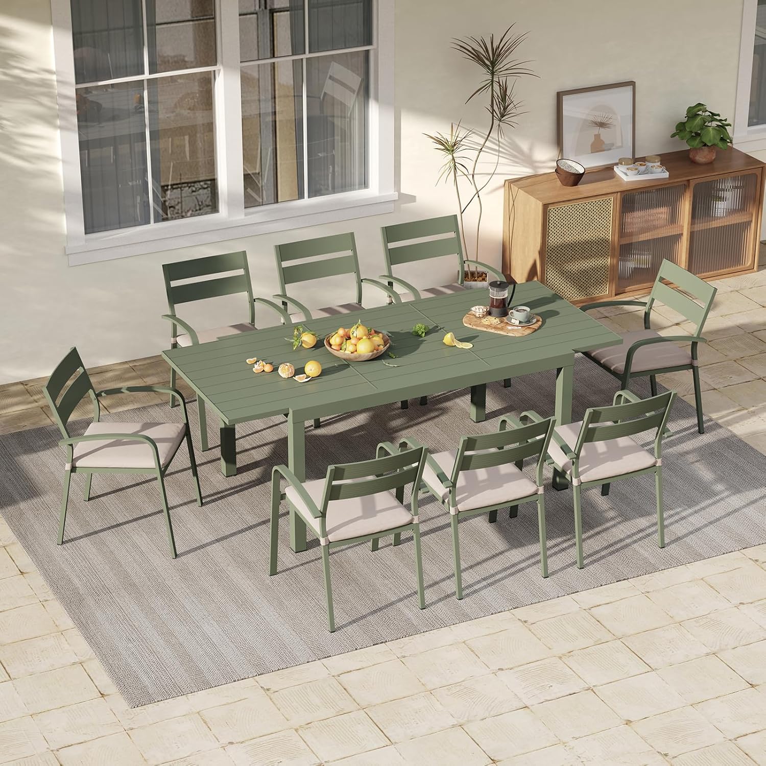 Soleil Jardin Aluminum Patio Extendable Dining Table, 59" - 83", Adjustable Indoor Outdoor Furniture Rectangle Table for 6-8 Person Porch Deck Garden, Green