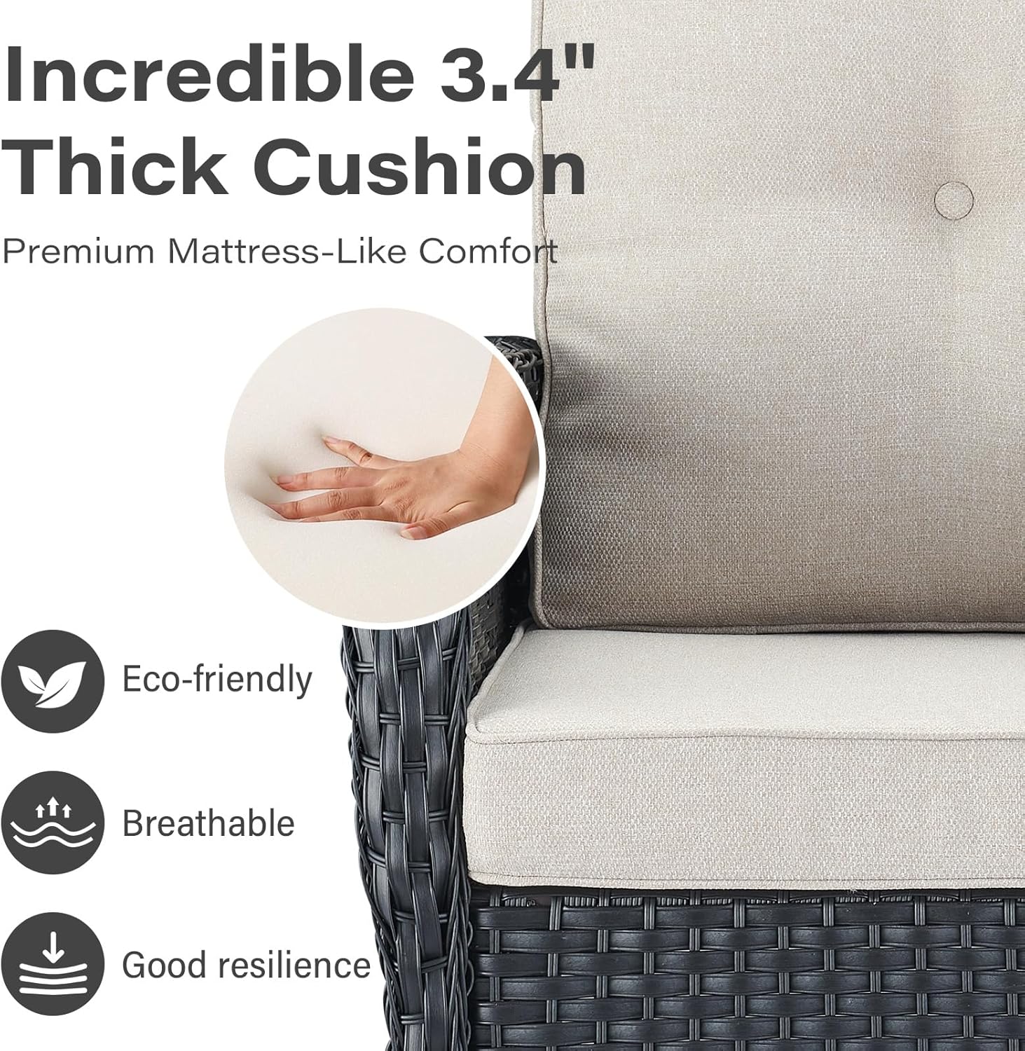 - 3.All-weather PE Wicker Furniture: Featuring a long-lasting woven finish, this style is not only incredibly durable but also provides a versatile appearance. The handcrafted details of this material allow this patio furniture set to blend seamlessly with your outdoor decor.