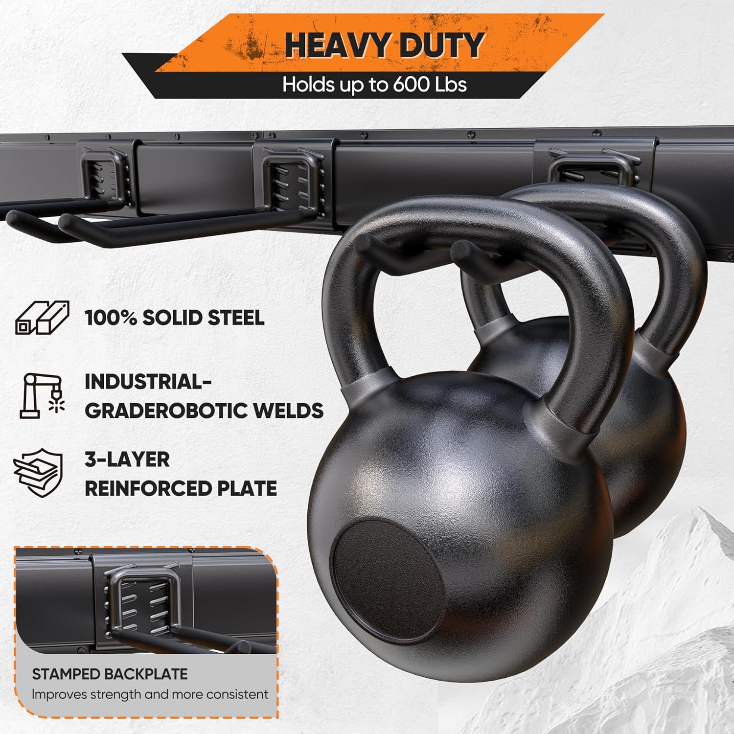 - Simple Design, Powerful Performance: Nacial garage organizer wall mount heavy duty combine simple design with ultimate durability, crafted from premium heavy-duty solid steel, supporting up to 600 lbs—twice the strength of standard hooks. Each rail and hook features a 3-layer reinforced plate, shaped through over 20 precision steps and strengthened at high temperatures for 4 hours for superior load capacity. Nacial Simple Design—Great Hook Come with Great Performance