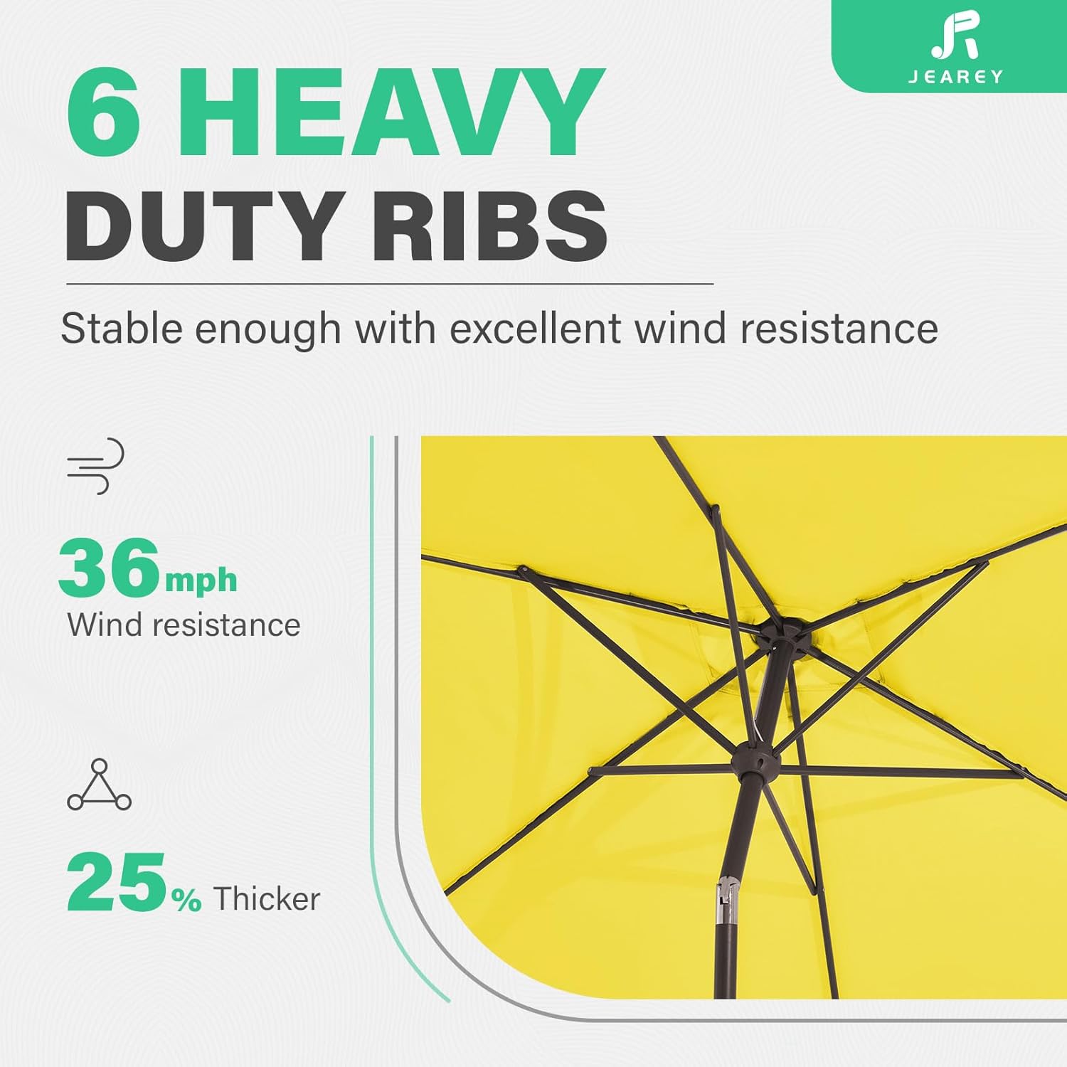 - 【WIDE SHADE】- The size of JEAREY rectangular patio umbrella is 6.5' x 10'. The rectangle design is beautifully styled and has a wide range of shade space, which can accommodate a table and chairs for 4-6 people
