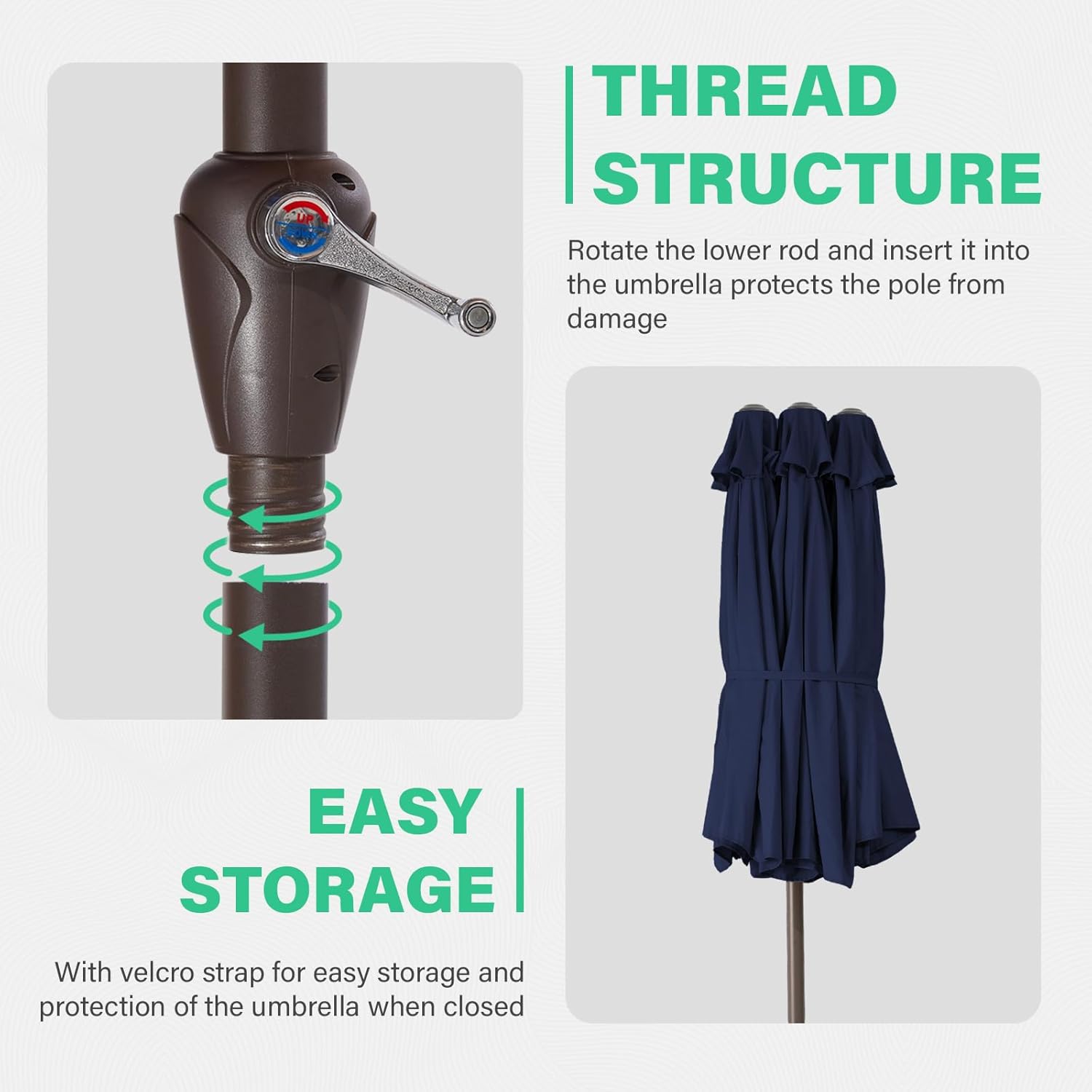 JEAREY 15FT Patio Umbrella Large Outdoor Umbrella Extra Double-Sided Market Umbrella with Crank Handle for Garden, Deck, Backyard and Pool, Navy