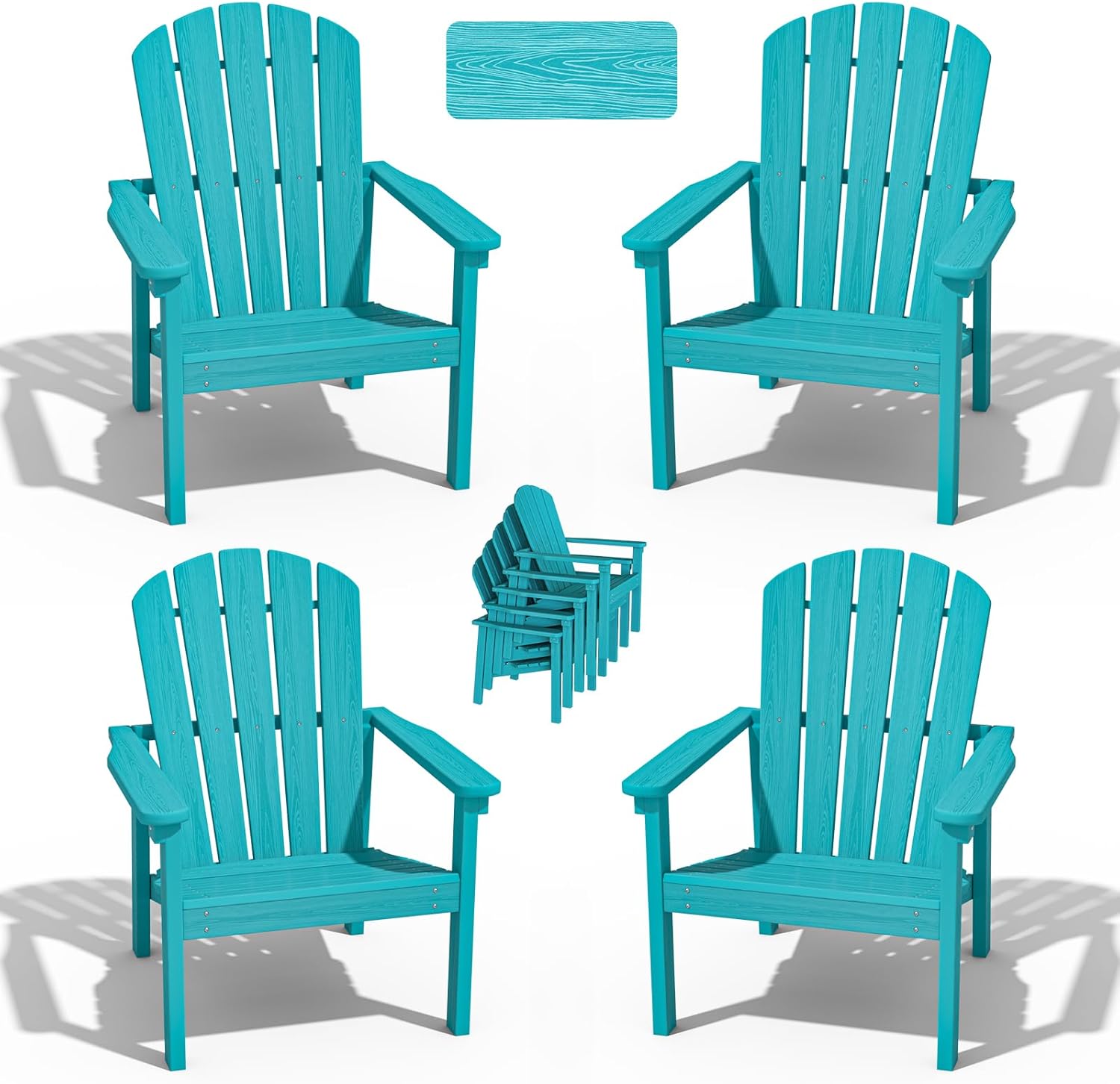 Stackable Adirondack Chair Set of 4, HDPE Outdoor Patio Chair - Durable and Space Saving, Suitable for Porches, Lawns or Garden, Aruba