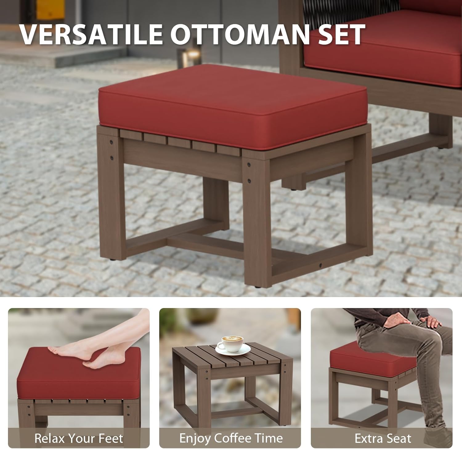 EAGLE PEAK Natural Wood Outdoor Patio Furniture, Cedar Furniture, Conversation Set, Outdoor Seating for Deck Patio Porch, Sofa 2 Chairs 2 Ottomans & Coffee Table, 6 Pieces, Brown/Red