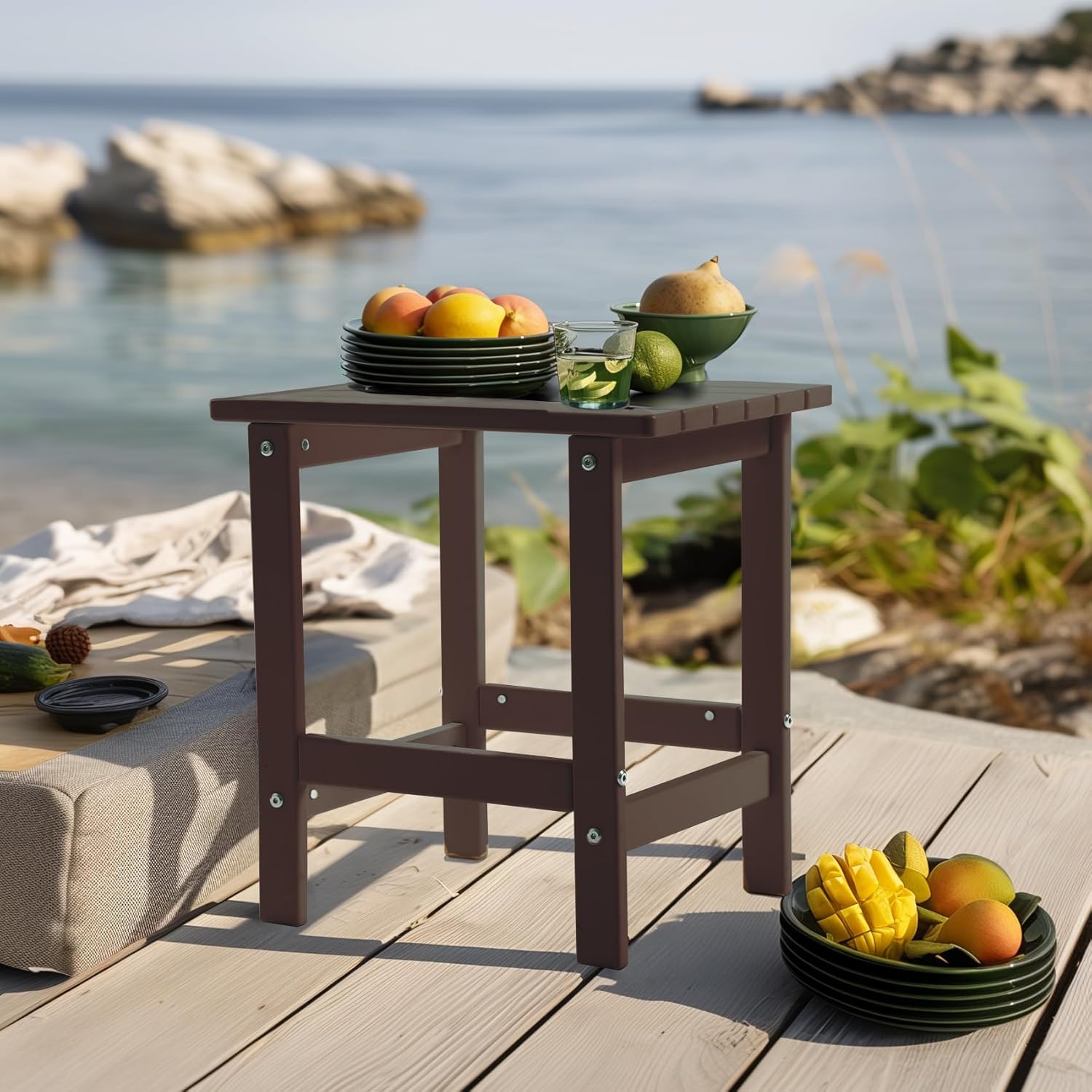 PASAMIC Adirondack Square Side Table, HDPE Outdoor Side Tables, Weather Resistant End Table for Patio, Backyard, Pool, Indoor Companion, Beach, Easy Maintenance (Brown)