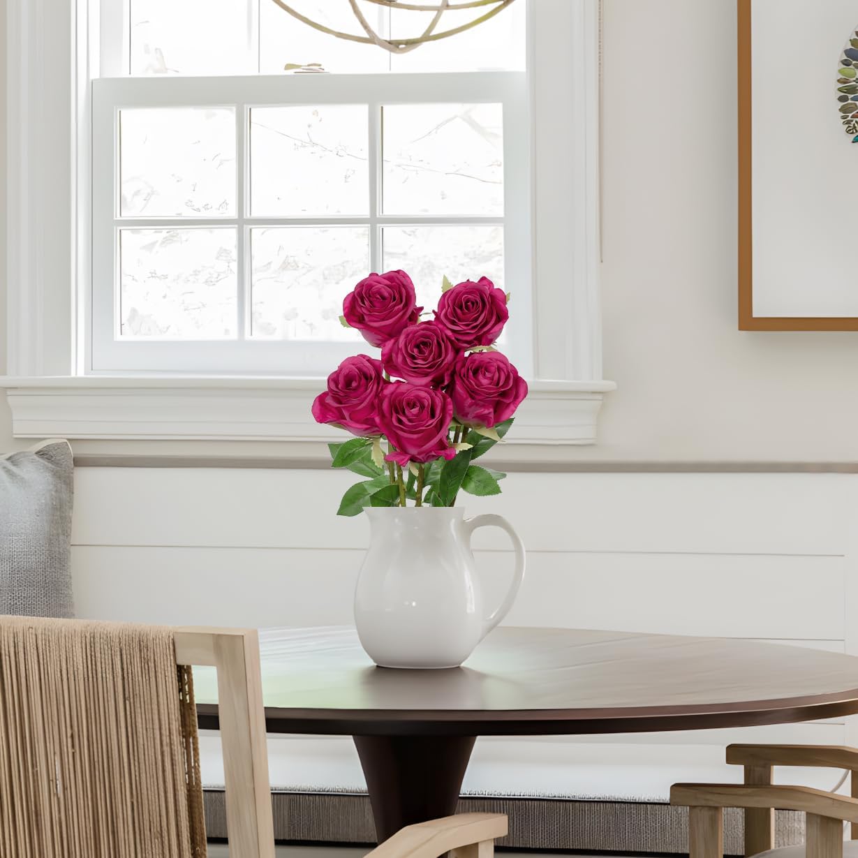 Briful Hot Pink Artificial Roses – 6PCS 18.9" Silk Rose Faux Flowers with Long Stems Realistic Fake Rose Bouquet for DIY Wedding Arrangements Table Vase Centerpieces Home Event Decor