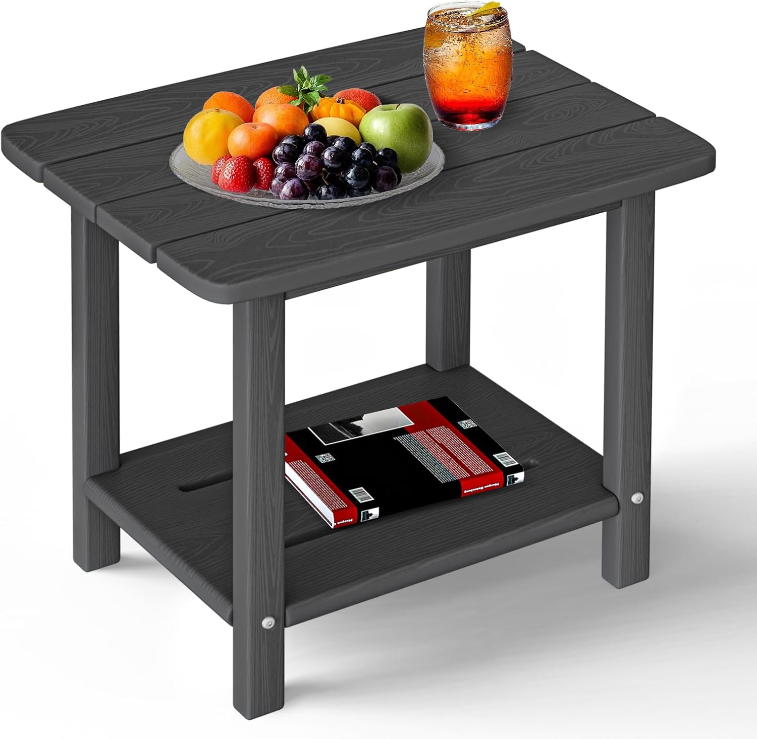 Adirondack Square Side Table - 18.4" Large Panel HDPE Outdoor End Table - Weatherproof, Rustproof & Low Maintenance for Patio, Lawn, Pool, Indoor Use (Grey)