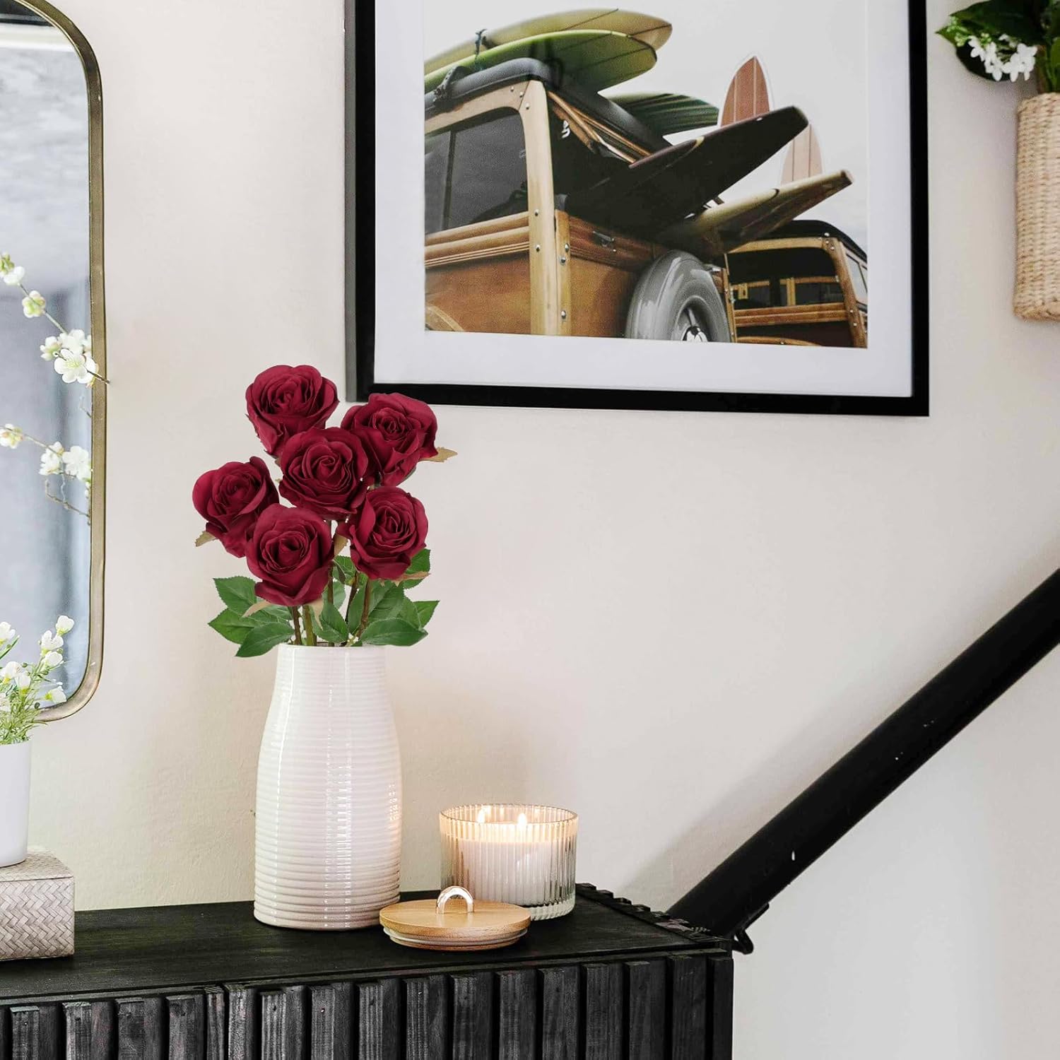 - 6 Full Blooms per Set: This set includes 6 individually crafted faux roses, offering a full and balanced arrangement for your space. The vibrant color and rich texture make them ideal artificial roses flowers for centerpieces, floral walls, or seasonal home updates.