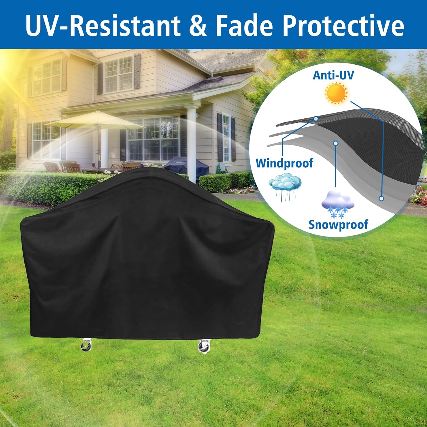 - Premium Material: 100% Polyester/Oxford fabric is a classic choice for Members Mark cover, with an added UV-stabilized & Water-resistant coating and a water-resistant laminated backing could prevent water from seeping through cover, keeps your grill dry and clean in all weathers and ready to use
