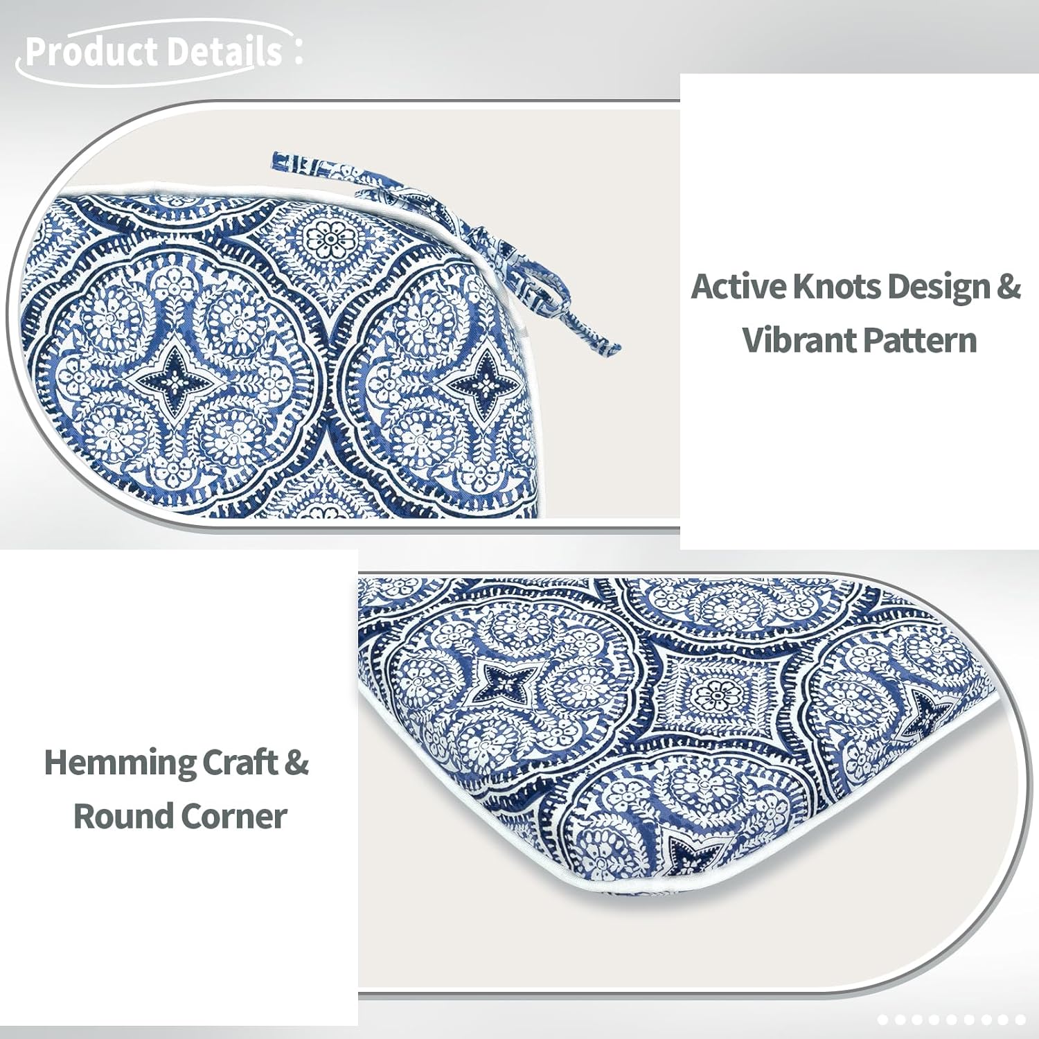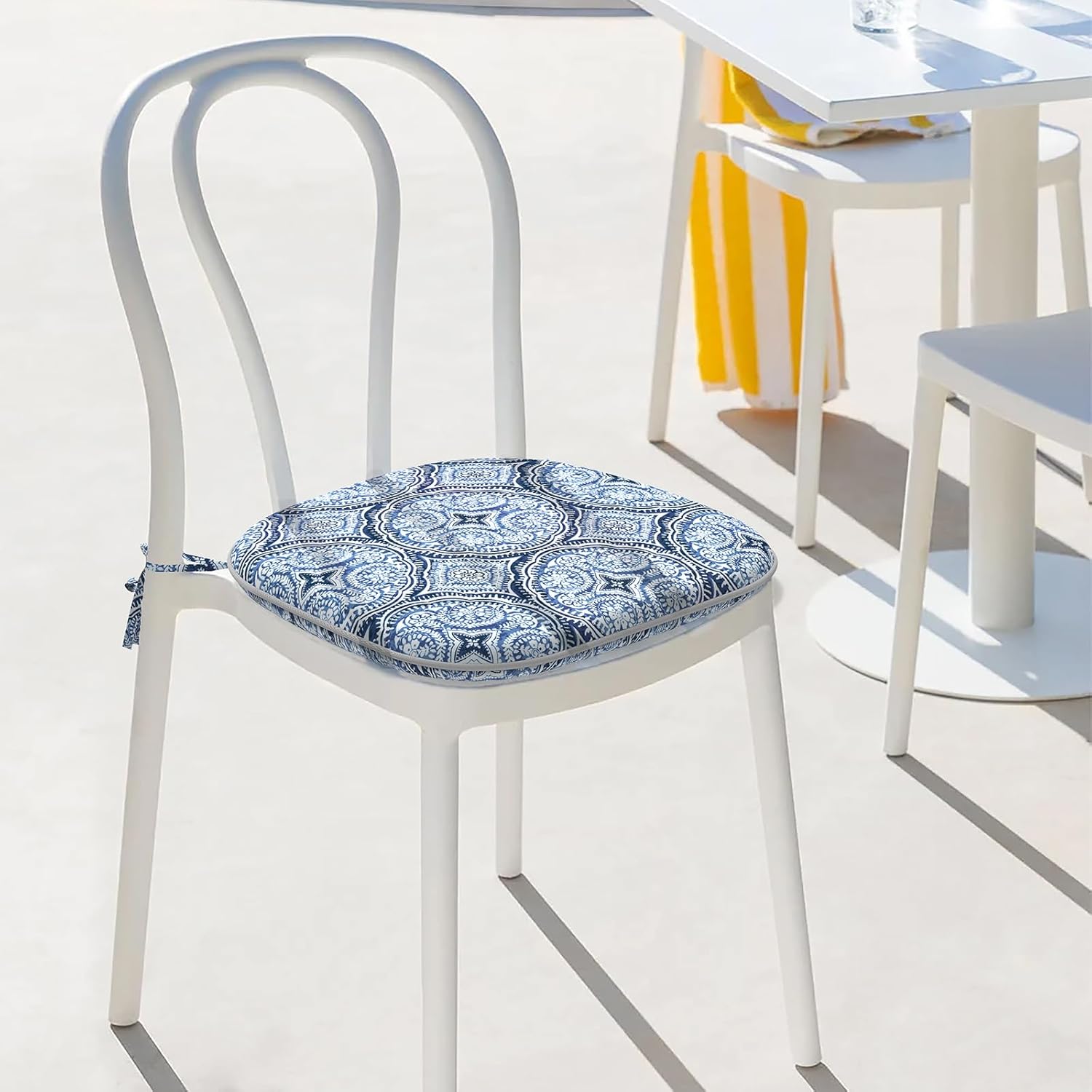 Indoor/Outdoor Chair Cushions 16x17 Inch, Patio Chair Cushions with Ties, All Weather Seat Cushions for Patio Furniture Home Garden Chair Use, Set of 4,Medallion Blue
