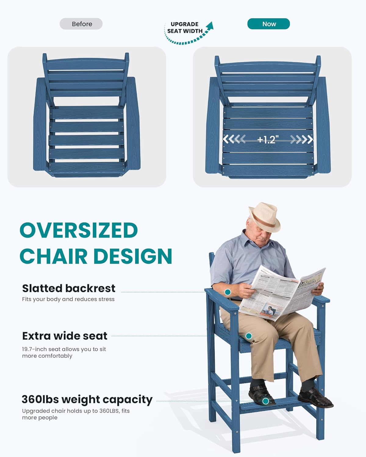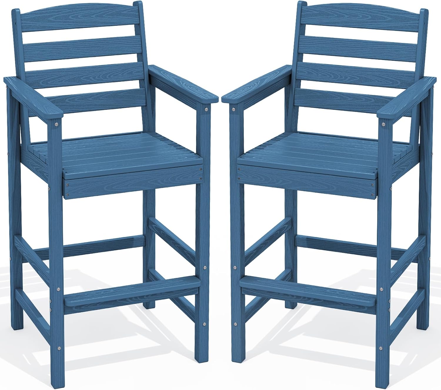SERWALL Tall Adirondack Chairs Set of 2, Oversize Balcony Adirondack Chairs Set, Outdoor Bar Height Barstools Widened Chair Set for Bistro, Poolside, Garden, Blue