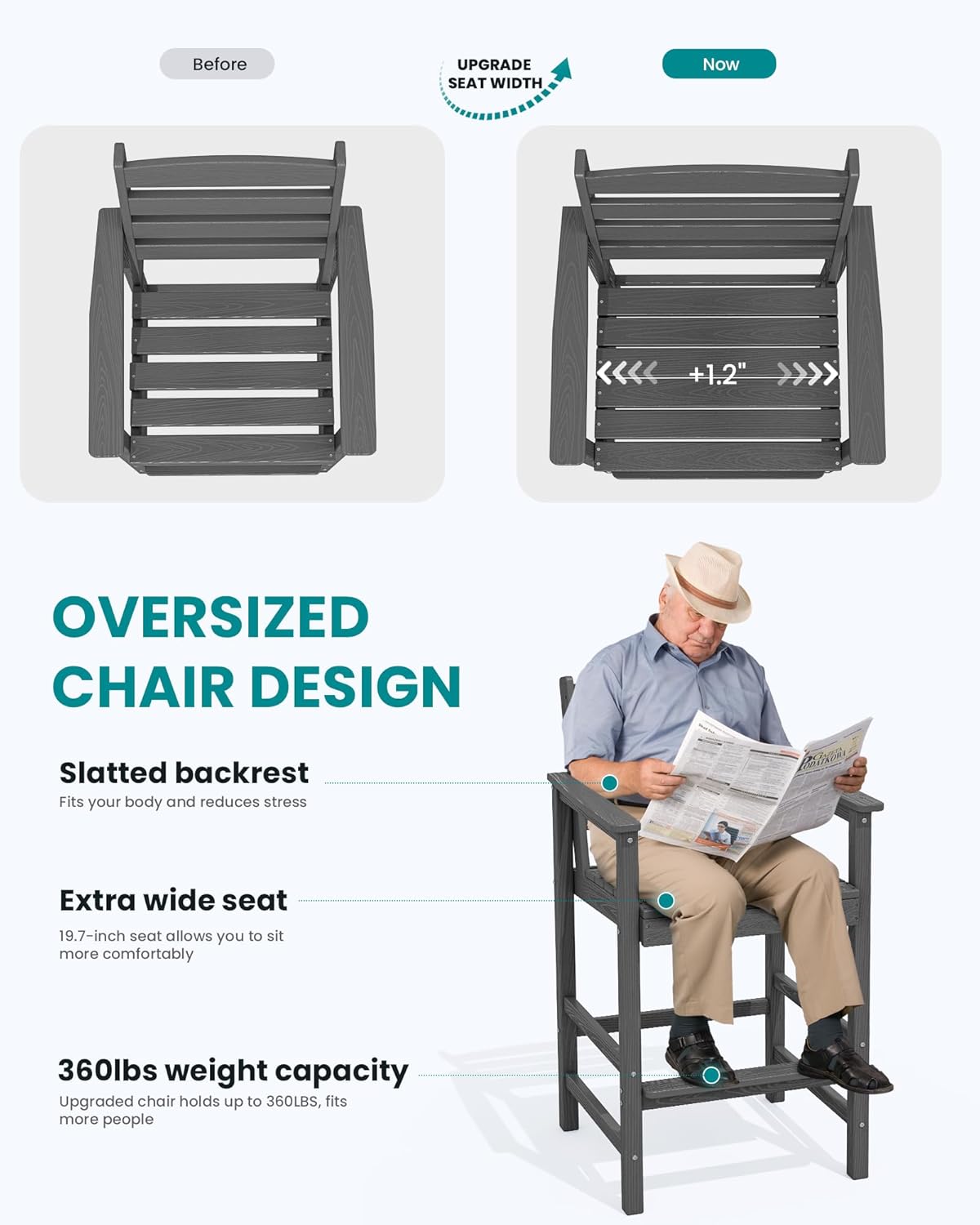 - Built-in Footrest - The built-in footrest is 2.56" wide, which allows the person sitting in the chair to relax their feet, and also allows children to step on the pedal and sitting on the adirondack bar chair.