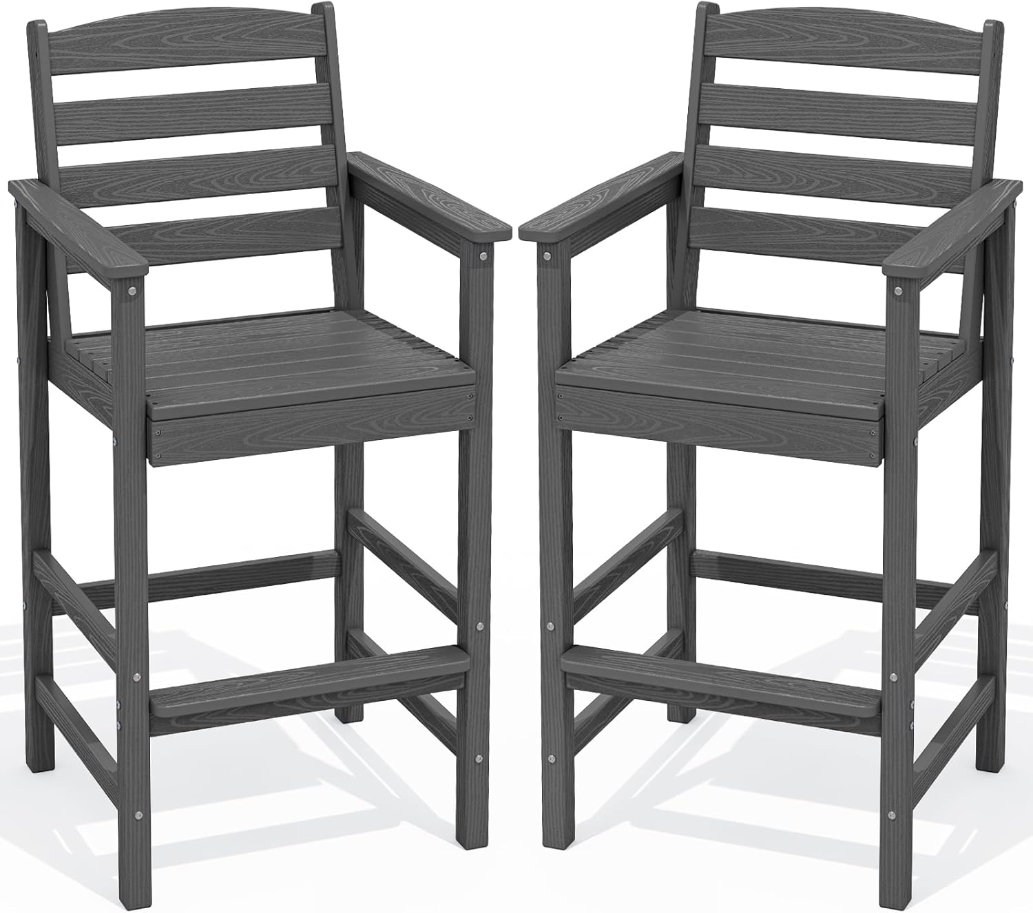 SERWALL Tall Adirondack Chairs Set of 2, Oversize Balcony Adirondack Chairs Set, Outdoor Bar Height Barstools Widened Chair Set for Bistro, Poolside, Garden, Gray